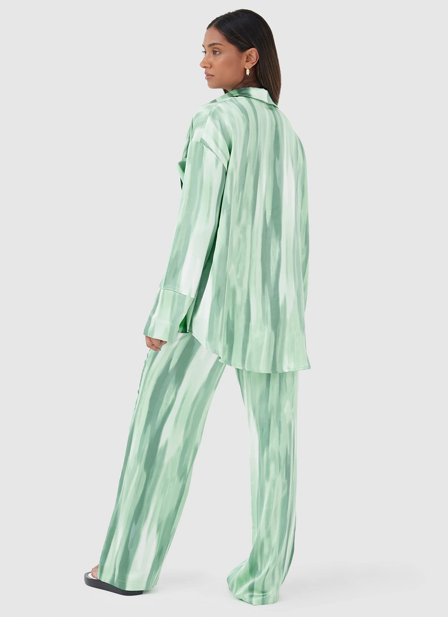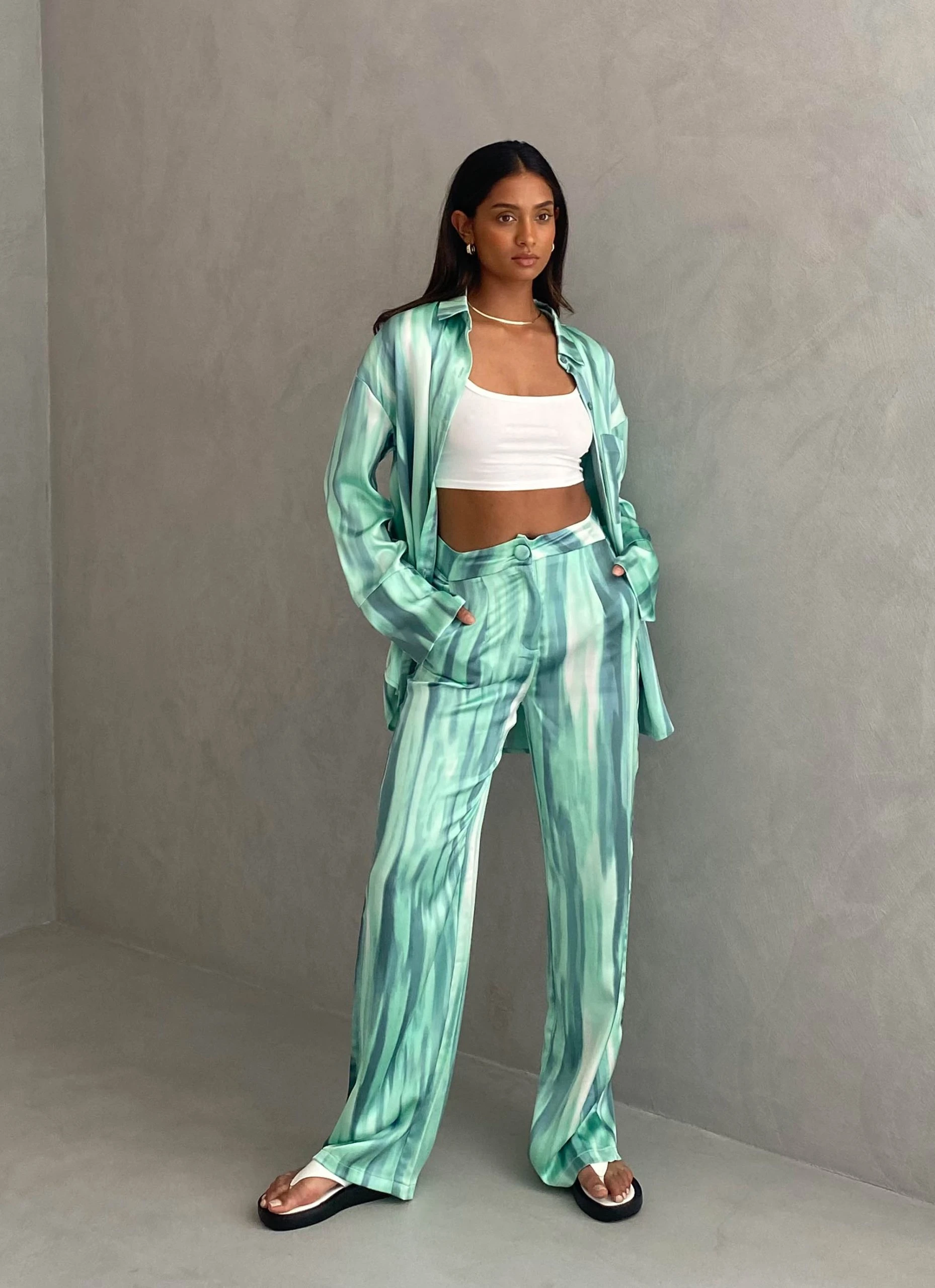 A style that makes a statement. Finished in this season’s bold prints, the Norma trouser has been brought to life in a dyed green watercolour effect for a vibrant design. Co-ordinate with the matching Norma trouser or wear with a bralet and sandals.