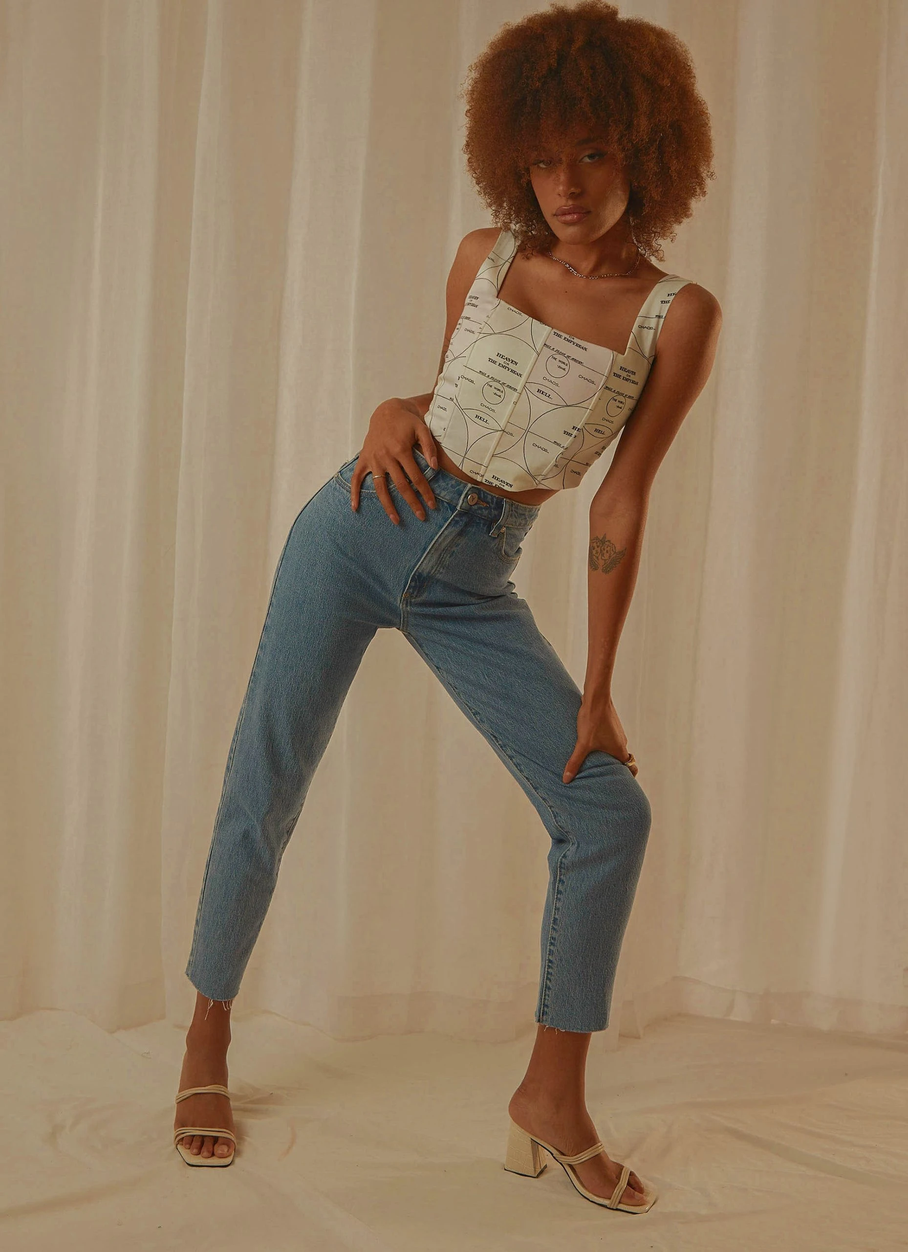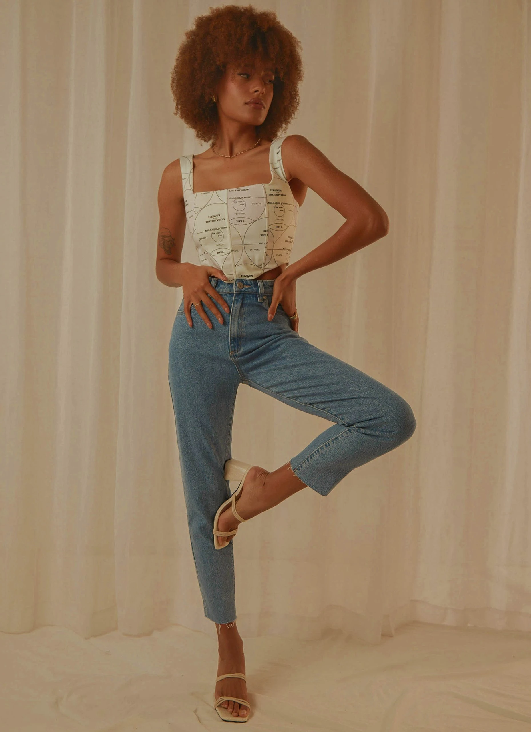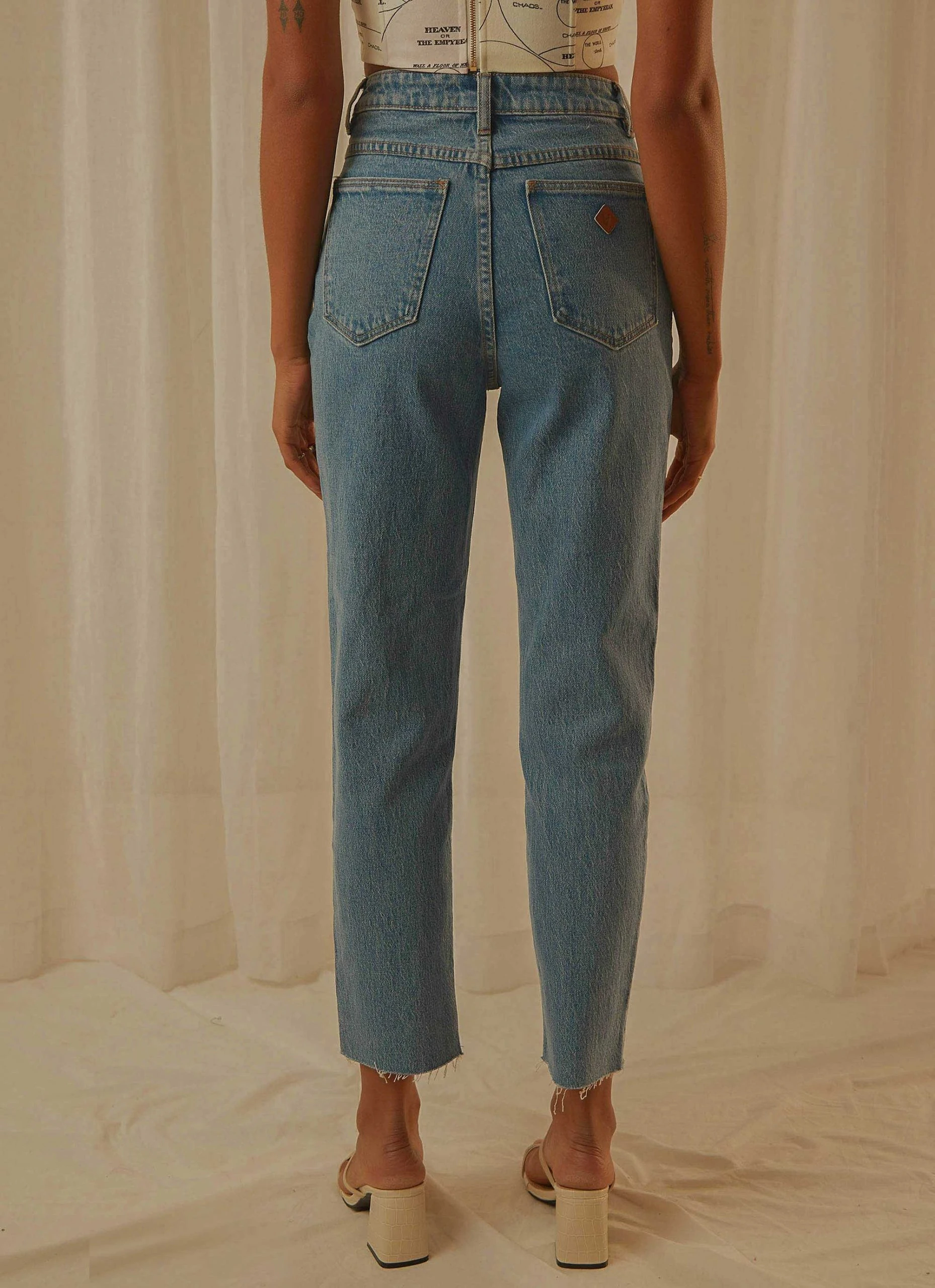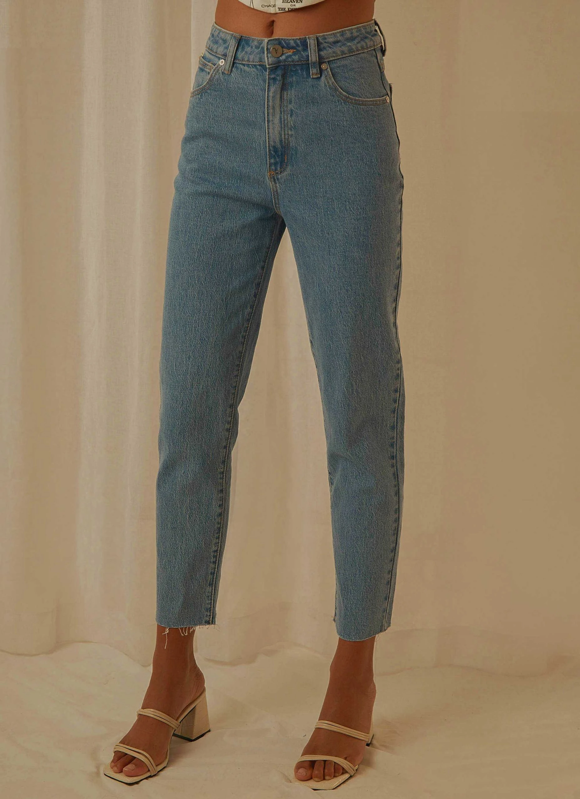 The 94 High Slim Jeans by Abrand is a slim fitting jeans and is designed with a cropped raw hemmed ankle, rip on the upper left thigh, belt loops, five pockets, zip fly and button closure and the iconic tan brand patch on the reverse. Make it a look by adding a slim fitting singlet with an oversized blazer.