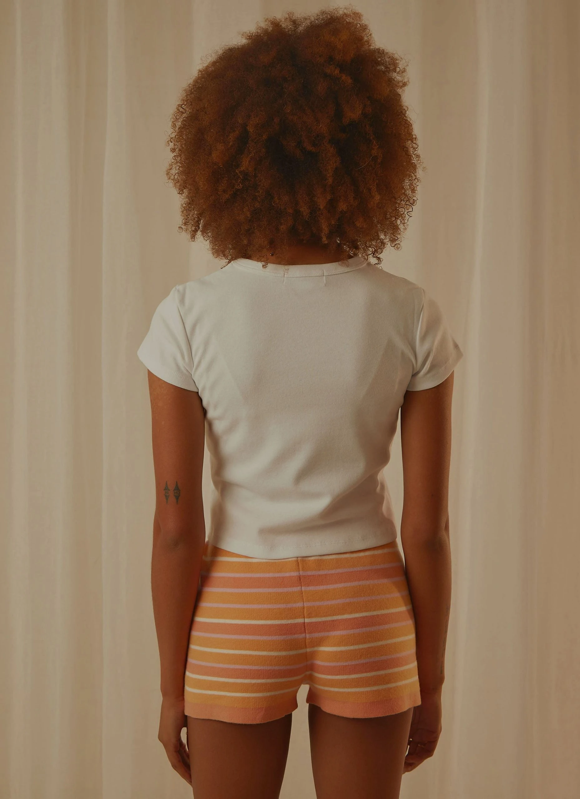 We’re feeling all the retro vibes and we’re here for the ride! The Here For The Ride Slim Tee is a 90’s style baby tee with. groovy printed graphic. A staple for your weekend wardrobe!