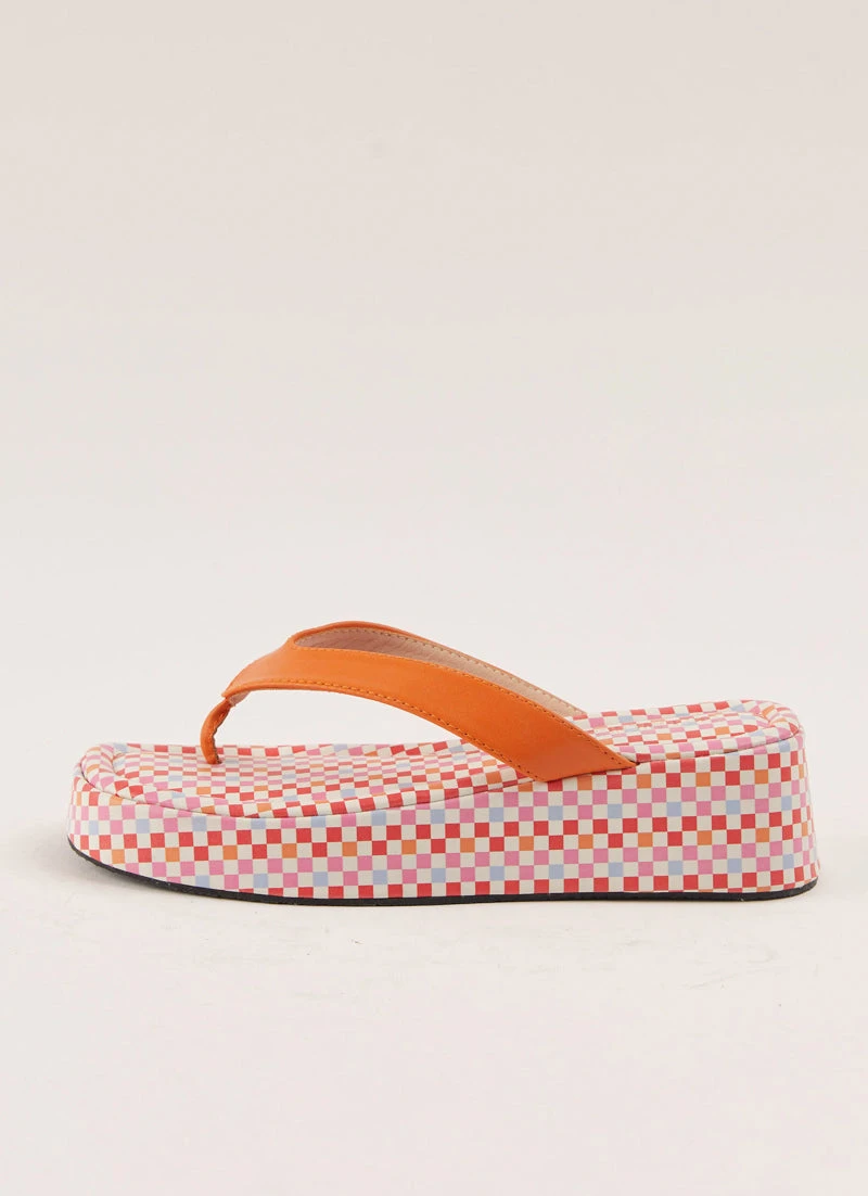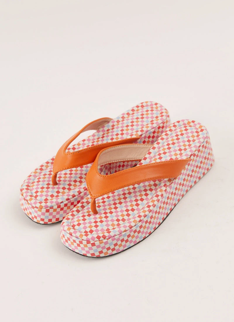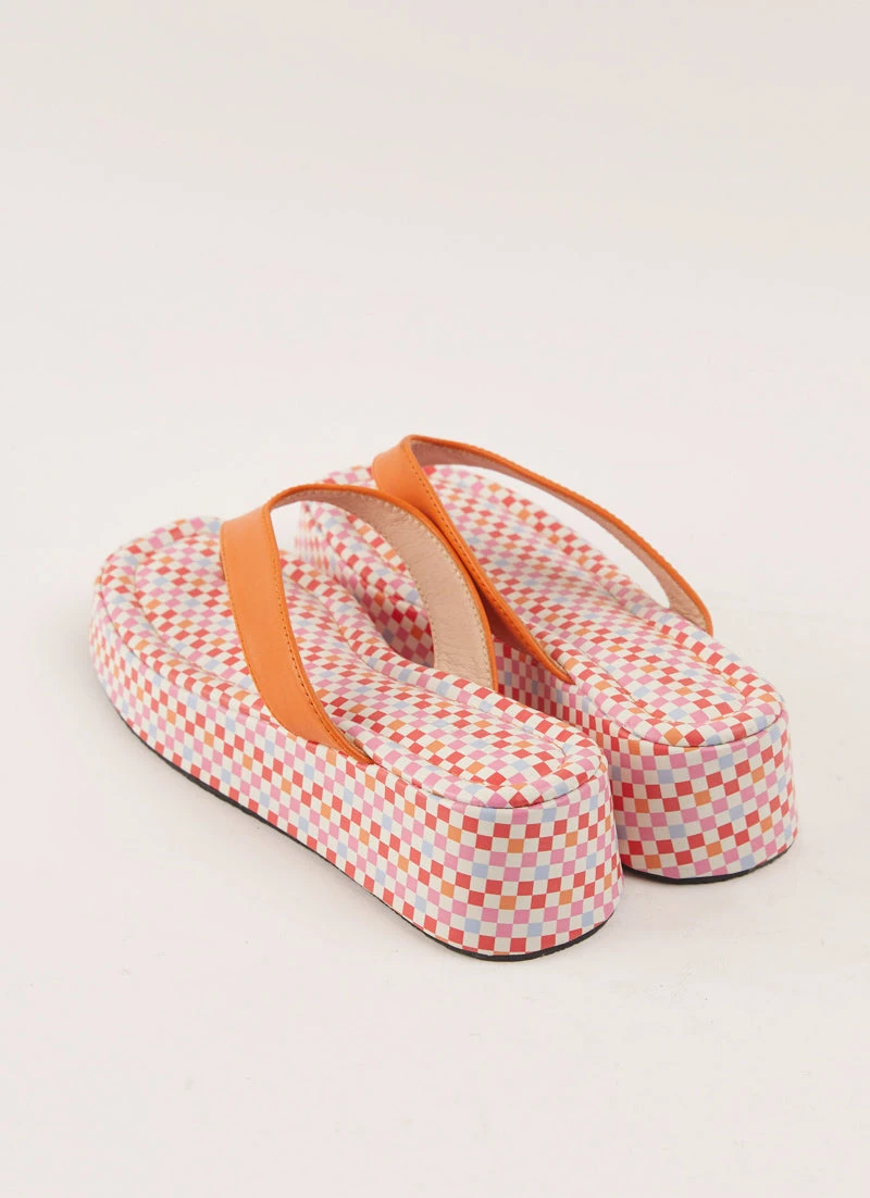 – Front toe strap with contrast sole