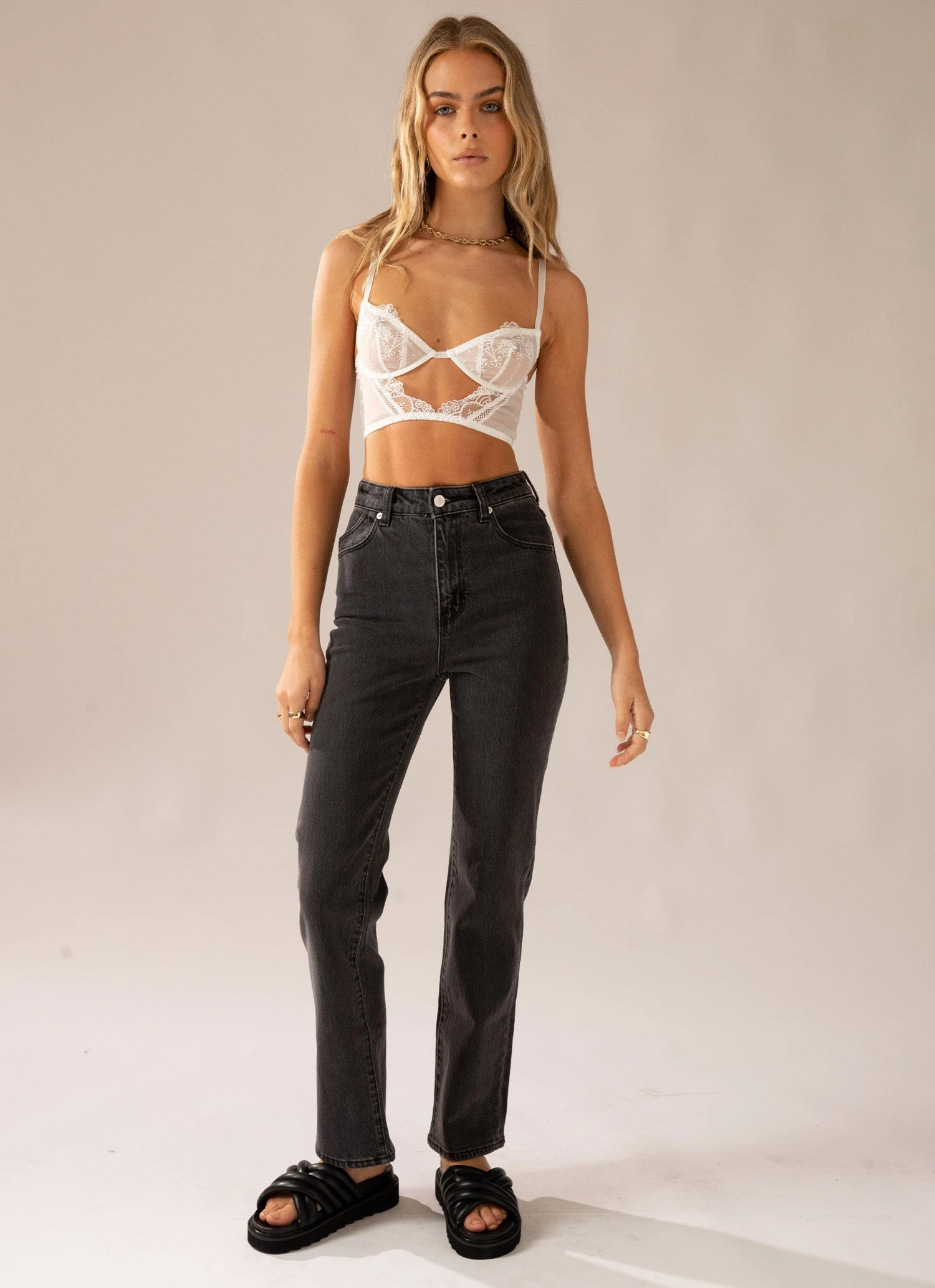 Meet our Romantic Ivy Bustier in soft ivory. With feminine lace and a bold front cut out detailing, this indulgent bustier will have you feeling feminine and empowered. Lace yourself in confidence in this show stopping piece.