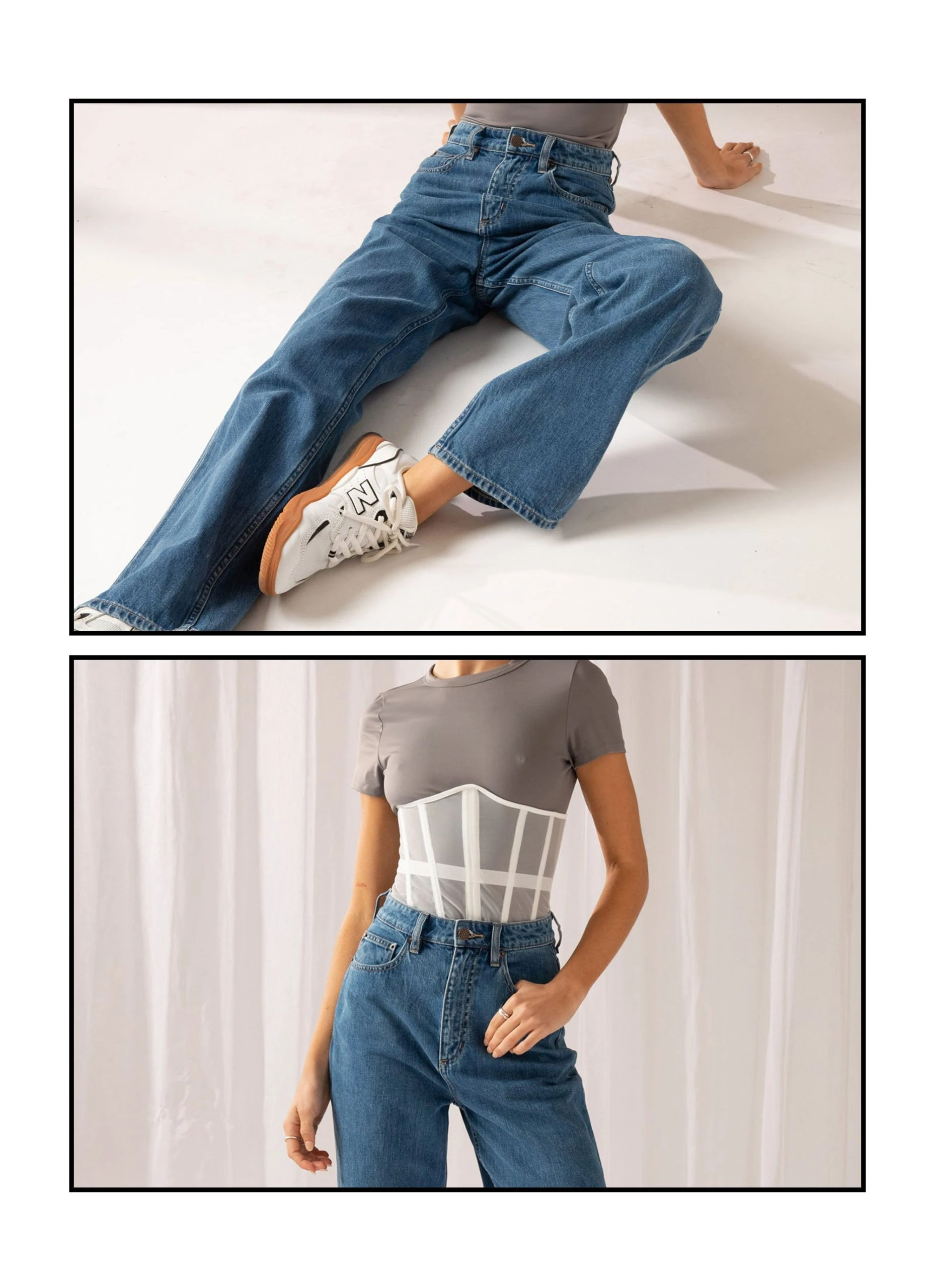 Our coveted High Baggy is high rise, sitting comfortably on your waist, relaxed through the seat and thigh, with a full leg profile. Style with anything from sneakers to heels, these jeans are the ultimate in versatility. Future Blue wash features a mid-blue stonewash with authentic high twill, rigid denim for a subtle worn-in appearance.
