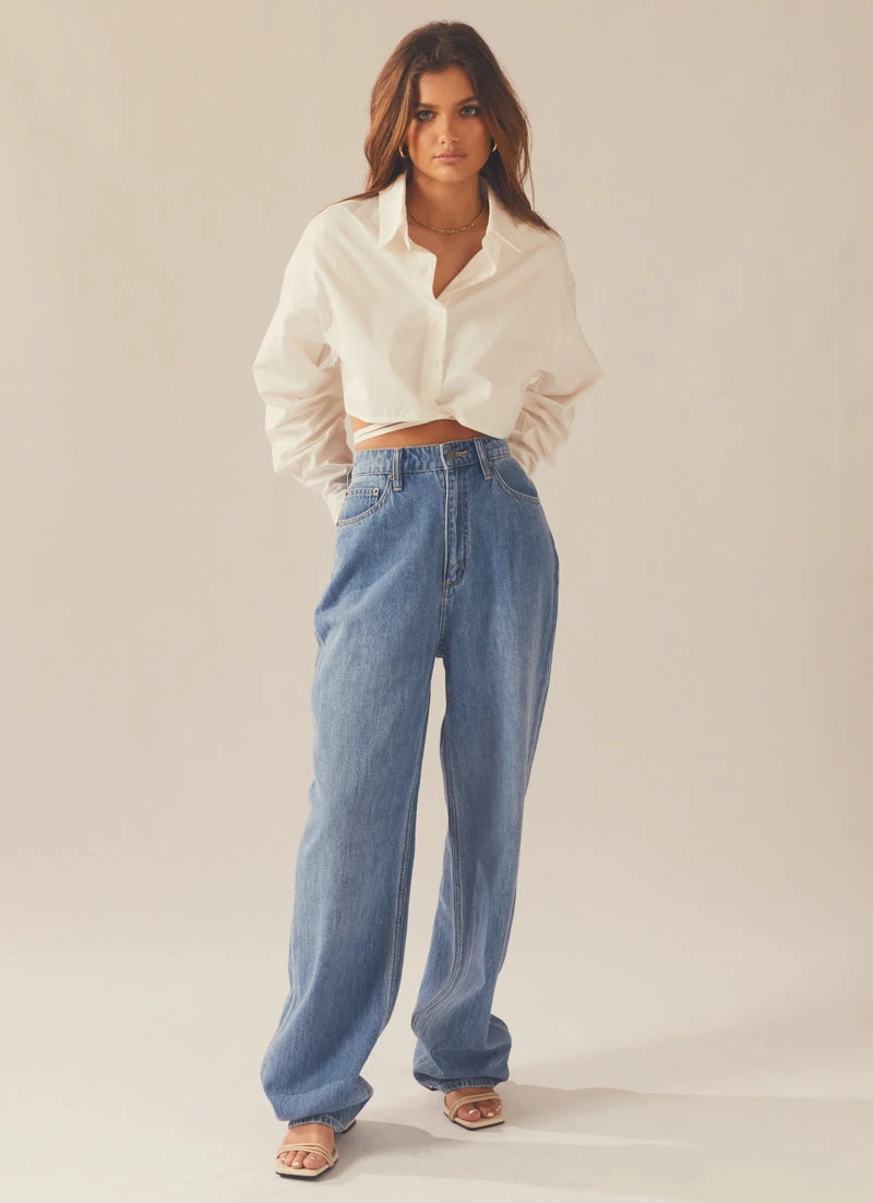 Our most popular new fit the High Baggy is the ultimate relaxed jean. Featuring a super high rise with a fitted waist that falls into a relaxed body and full leg length profile. We love them paired with a cropped tank and your favourite platform mules.