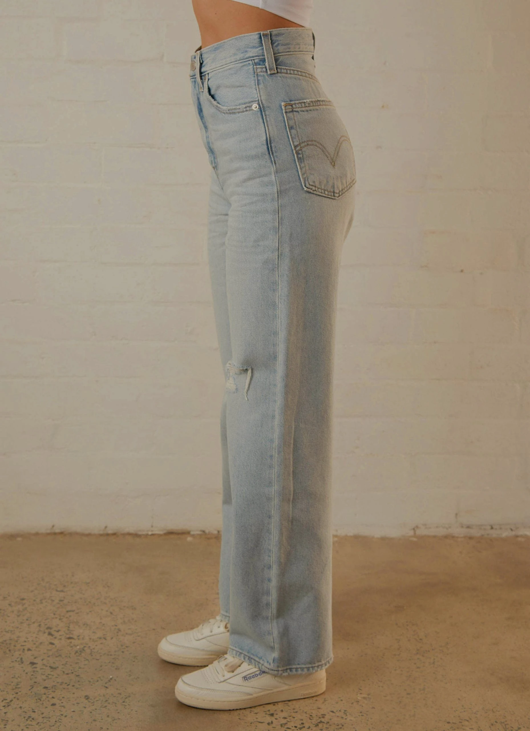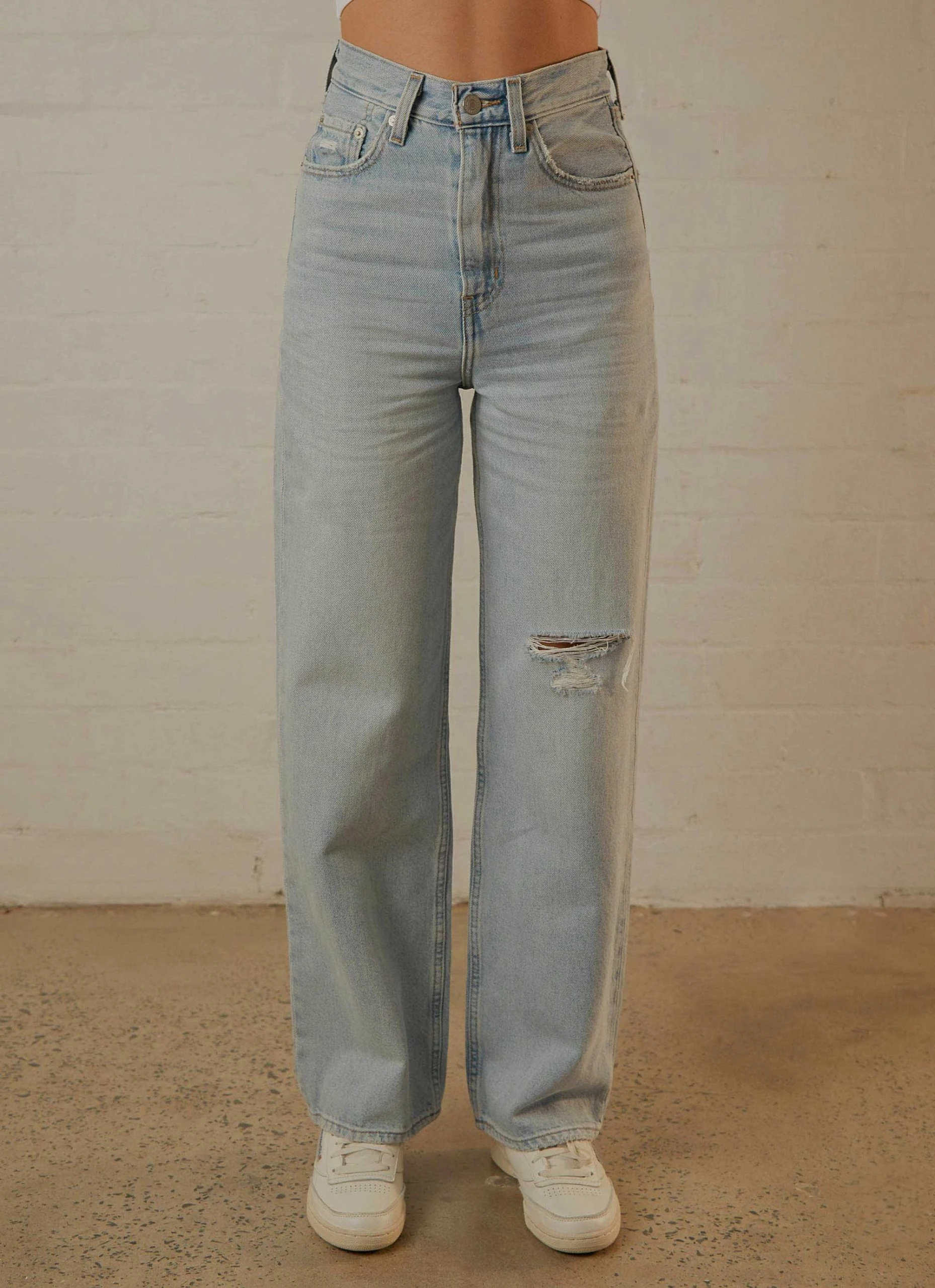 Let loose with this modern interpretation of a classic ’90s style. These jeans features a wide leg and flattering high rise. What does that mean for you? A cool, vintage-inspired style that gives you legs for days. Pair it with your favourite cropped graphic tee and sneakers for the perfect off duty look.