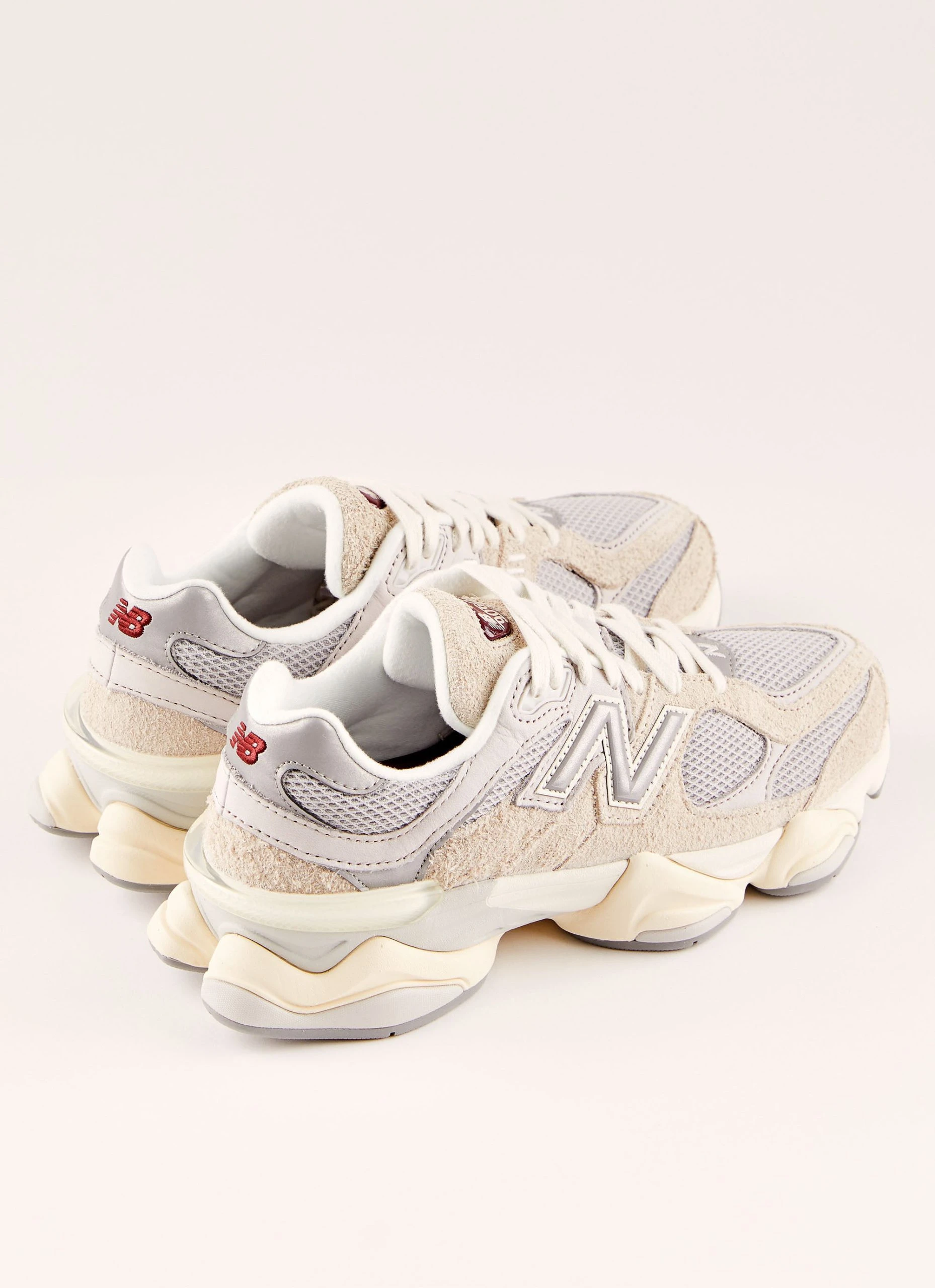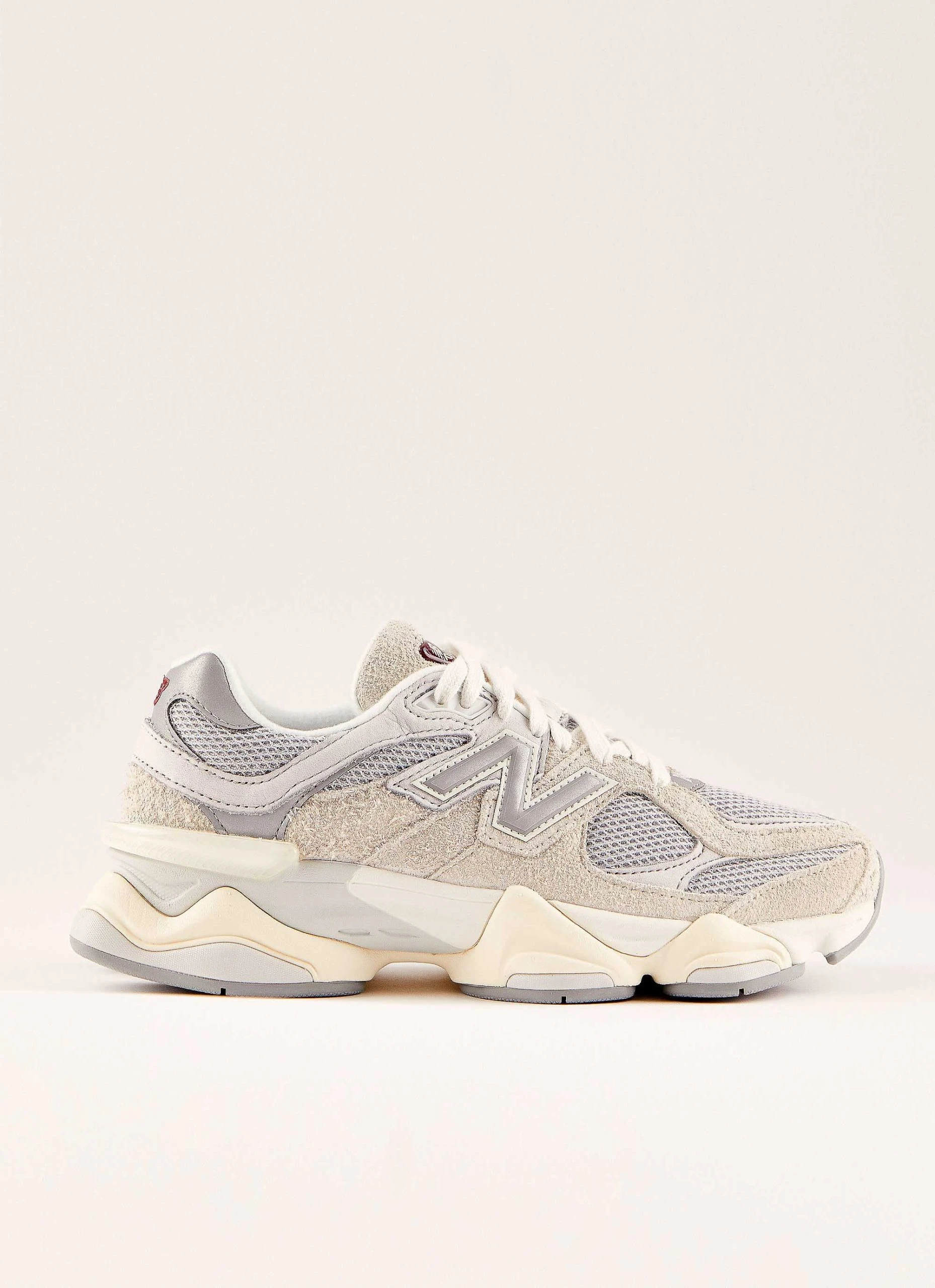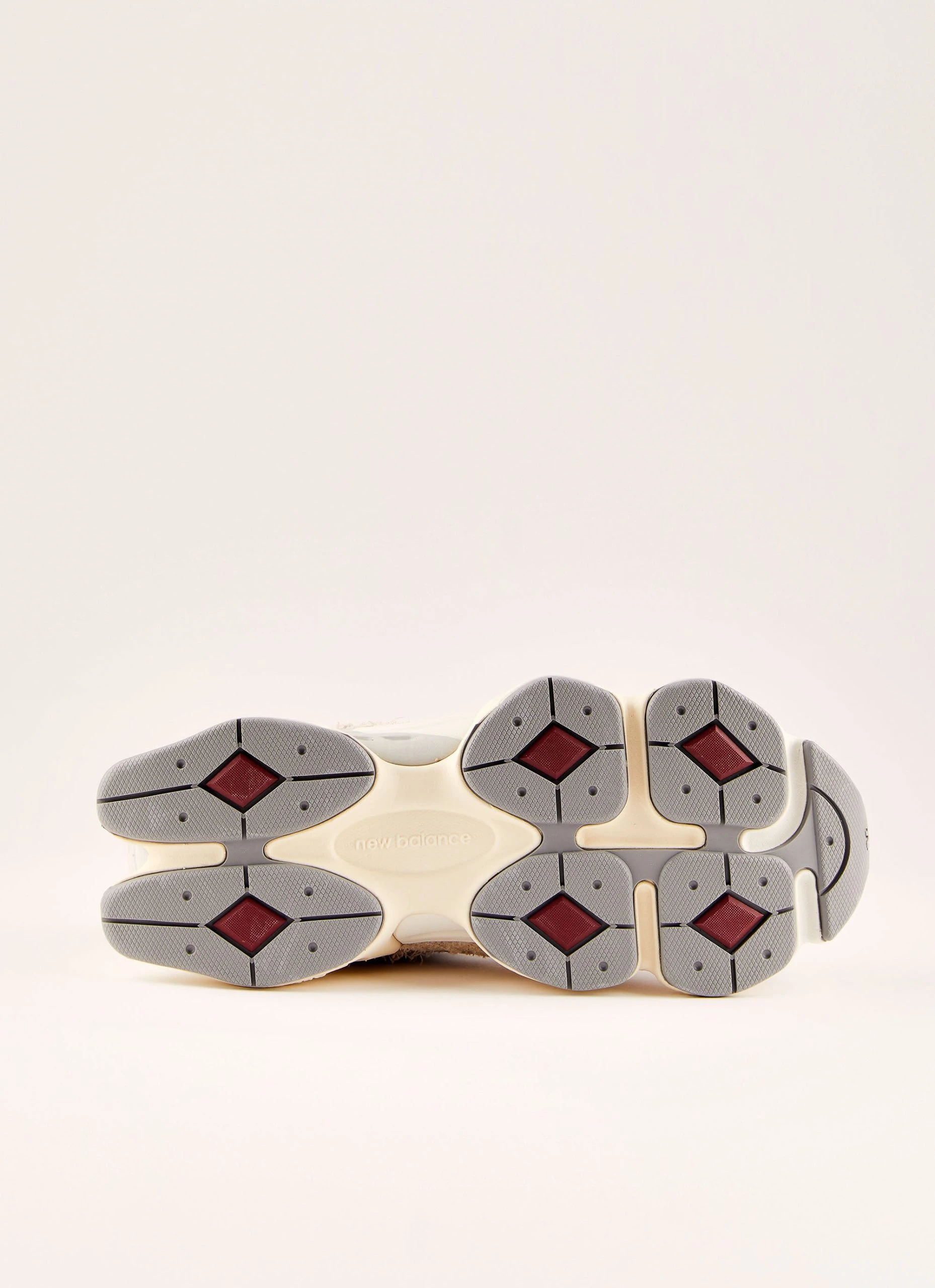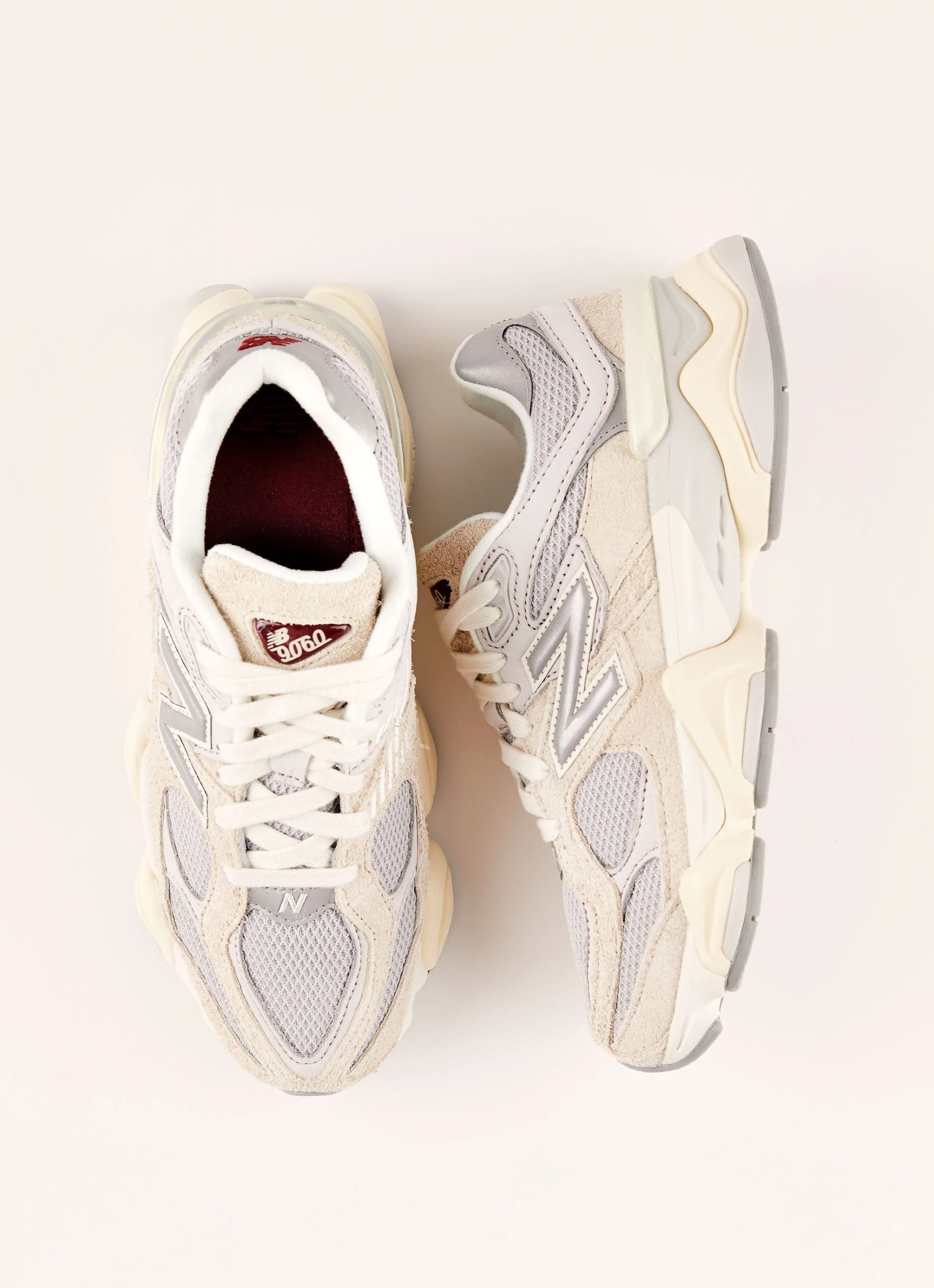The 9060 is a new expression of the refined style and innovation-led design that have made the 99X series home to some of the most iconic models in New Balance history. The 9060 reinterprets familiar elements sourced from classic 99X models with a warped sensibility inspired by the proudly futuristic, visible tech aesthetic of the y2k era. Sway bars, taken from the 990, are expanded and utilized throughout the entire upper for a sense of visible motion, while wavy lines and scaled up proportions on a sculpted pod midsole place an exaggerated emphasis on the familiar cushioning platforms of ABZORB, SBS and ENCAP.