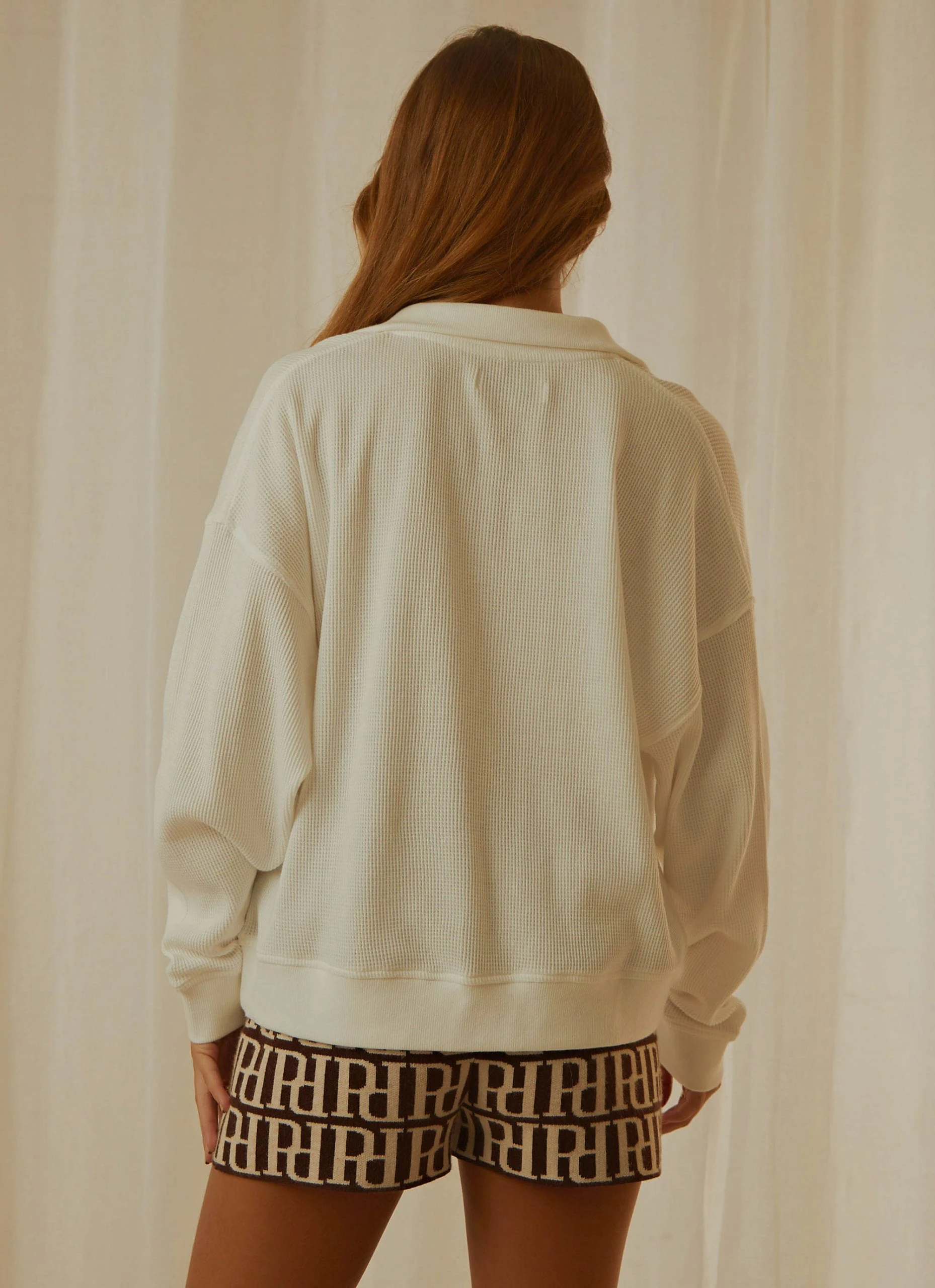 Say hello to your new everyday favourite! The Uma Waffle Top is the perfect addition to your everyday wardrobe with it’s lightweight cotton and subtle waffle print. A cute collared look with tapered cuffs and hemline.
