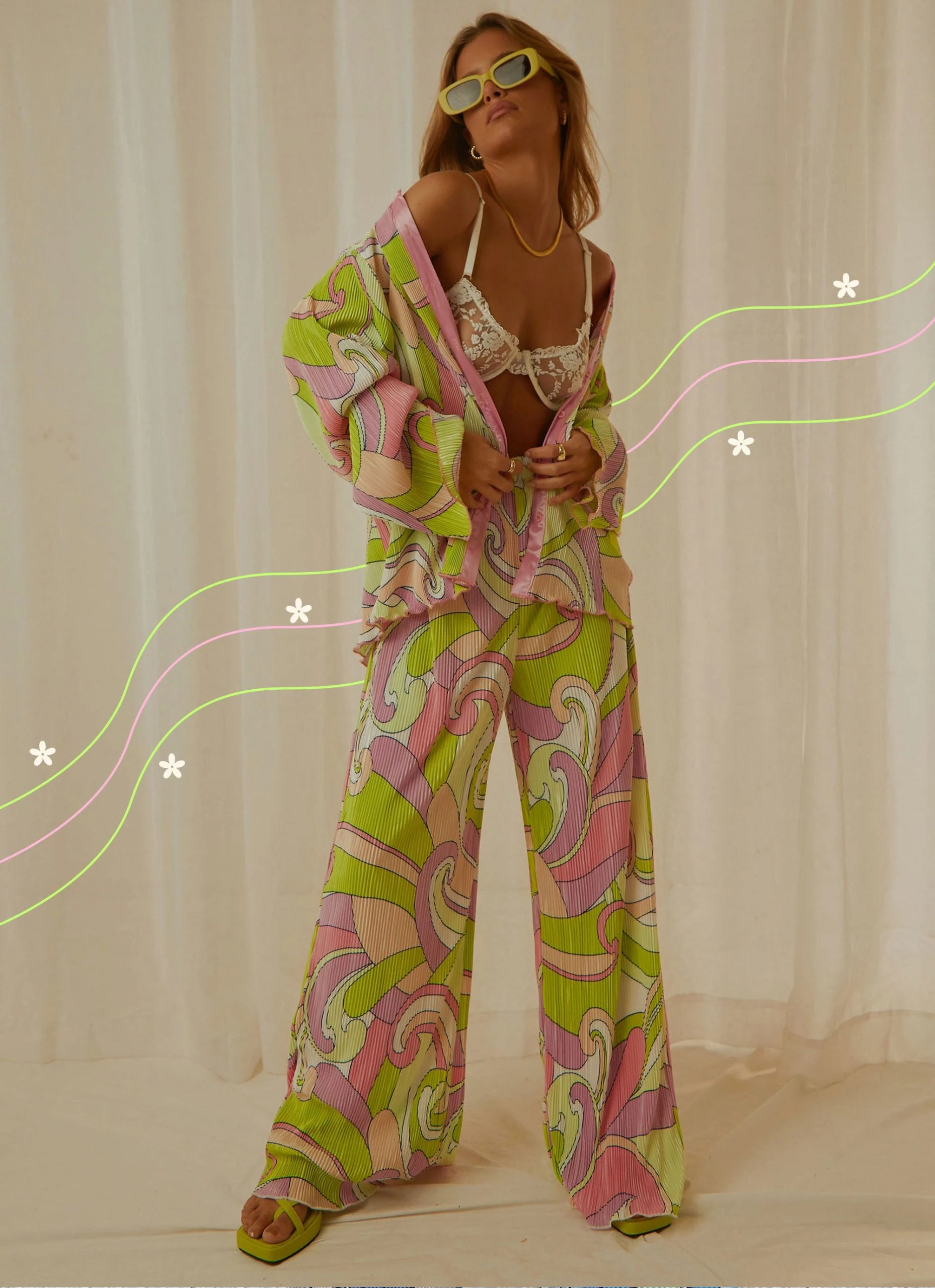 Feel all the retro vibes in the 90’s Muse pants. The perfect party pant, these look amazing paired with the matching Change Of Pace Shirt and super high stacked heels.