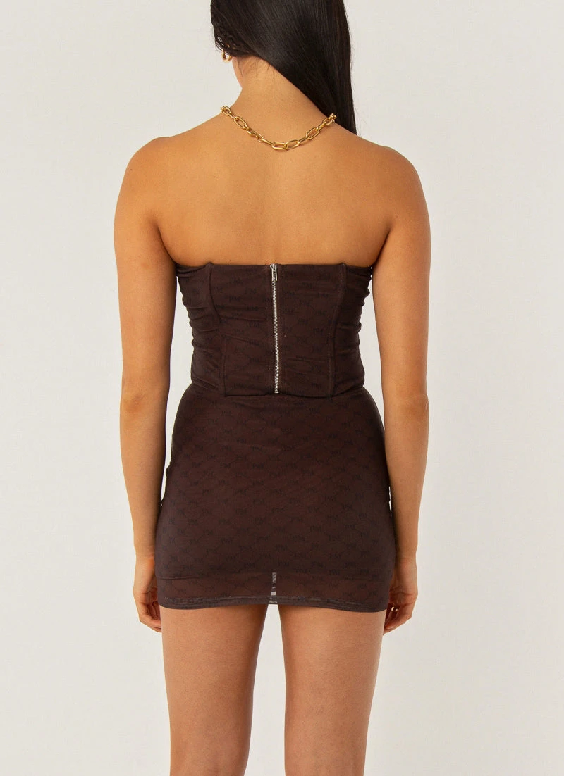Your new go-to party favourite! The Abbie Print Mini Skirt is a fitted mini skirt featuring our exclusive Peppermayo print on soft mesh overlay. Level up your look and style it back with the Abbie Bustier and simple gold jewellery.