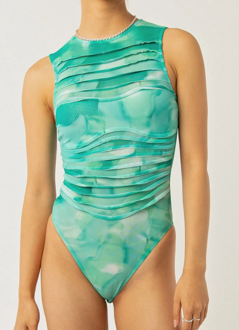 Cool girl vibes all day long in the Cool Down Tie Dye Bodysuit. Crafted from soft mesh in our exclusive Amazon print and featuring 1cm pintuck detailing across the bustline. Finish the festival fit with your favourite pair of denim cut offs and chunky gold jewellery.