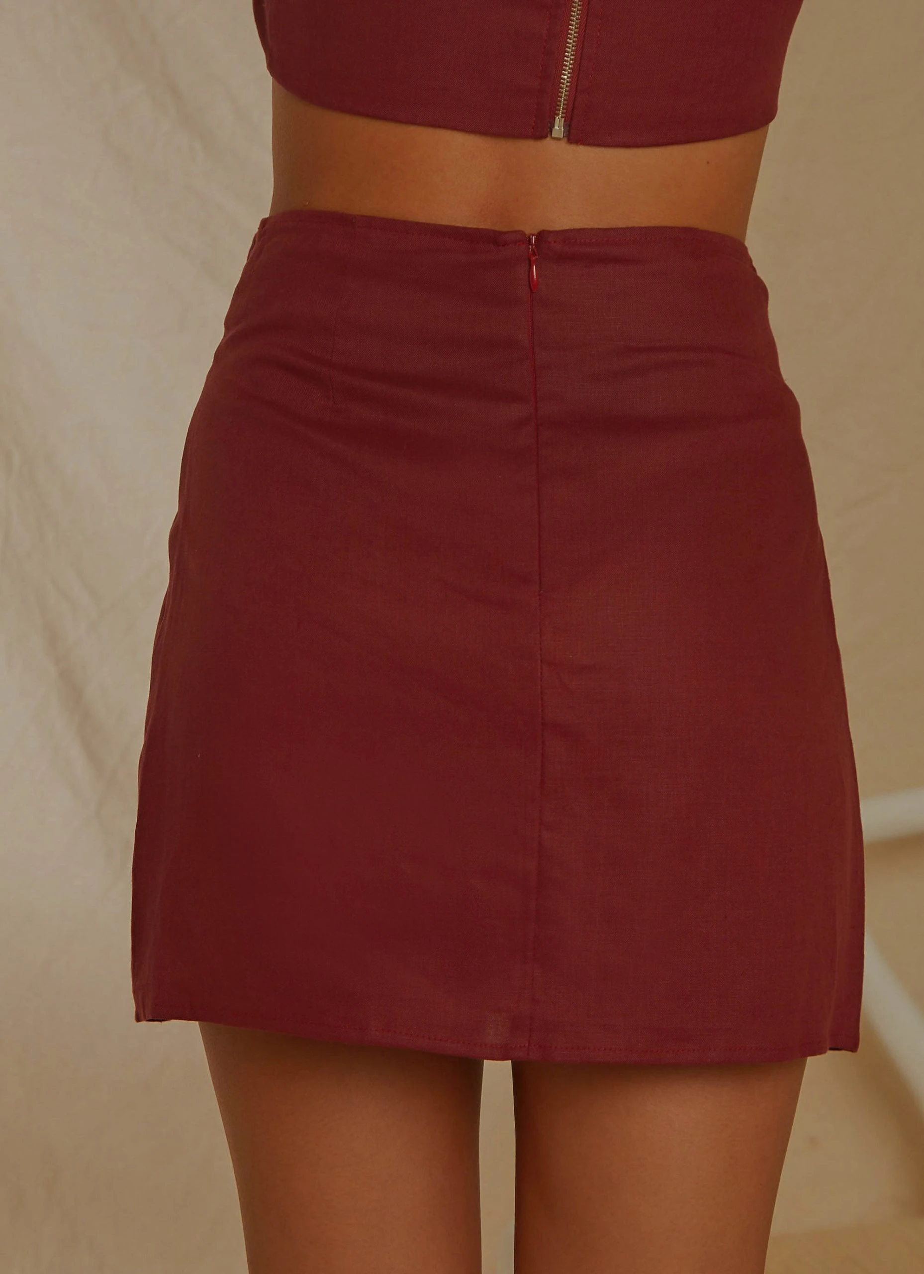 The wardrobe staple every cool girl needs. The European Edition Mini Skirt features knot detailing on the waist band and split on the left leg. We love it with the Island Nights Crop Top for drinks or your fave ribbed tank for a more casual look.