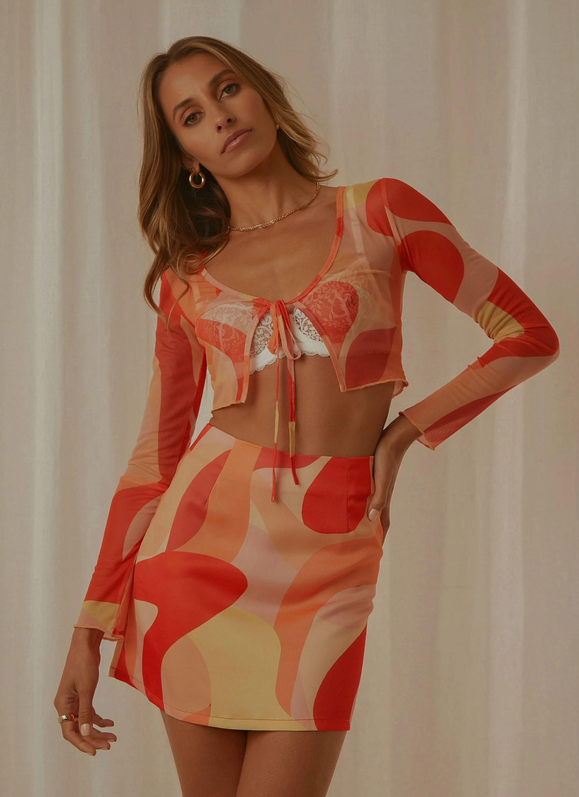 We’ve got the perf top for your next “jeans and a cute top” look. Our Everglow Sheer Crop combines chic and simple, with a lil 00s baby inspiration. Pair this cutie with your fave lace bra, our Thrill Bound Mini Skirt, and platform sandals.
