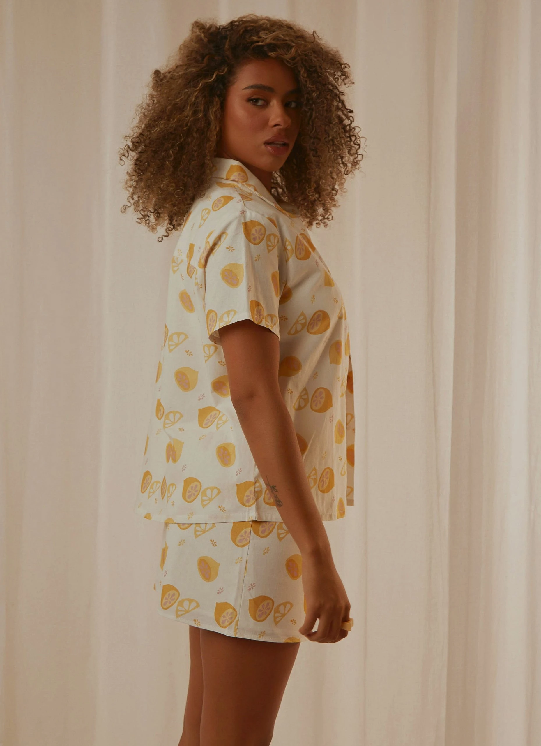 Your weekend wardrobe just got a lot cuter! Say hello to the Paloma Shirt, pair this with the matching Fruit Bowl Mini Skirt, sneakers and vintage inspired accessories for your next beachside coffee date.