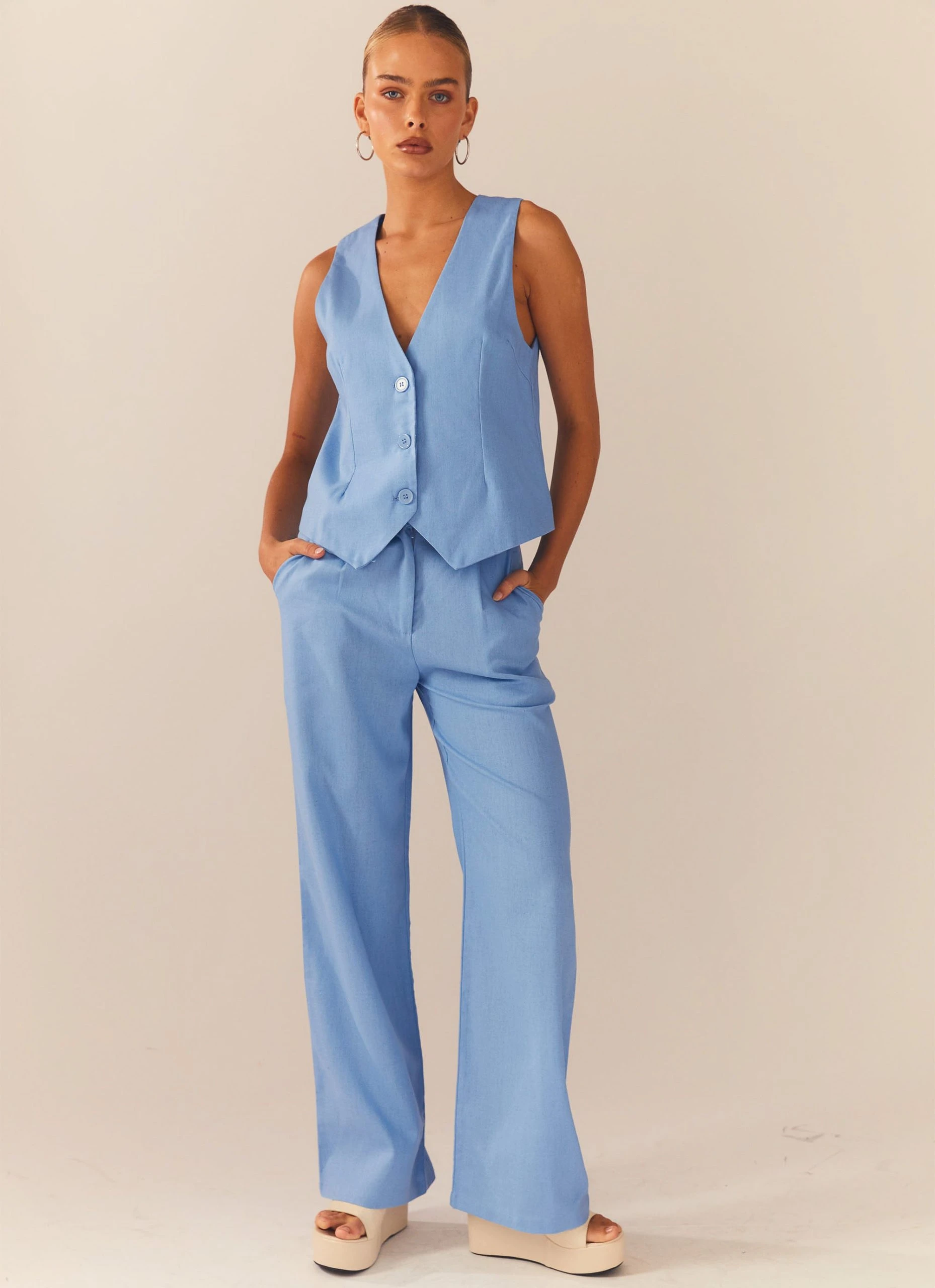 Your new go-to pants in this gorg new hue. Designed to sit lower on the hips with a straight leg. Match in our Cloud Dancer Linen Vest Top for the ultimate chic suit.