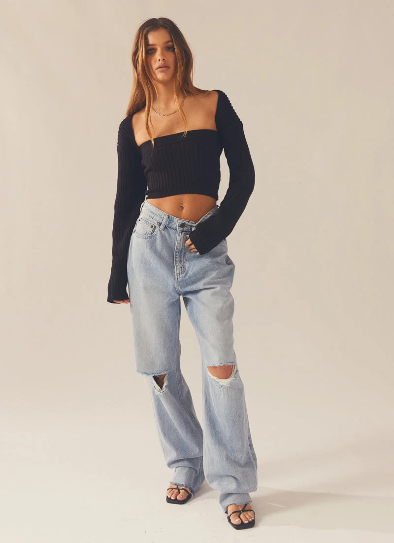 Sexy and sophisticated, the Hayley Knit Bolero is a long sleeve, fitted style crafted in thick ribbed knit fabric. We love it layered over the April Knit Tube Top with high waisted denim.