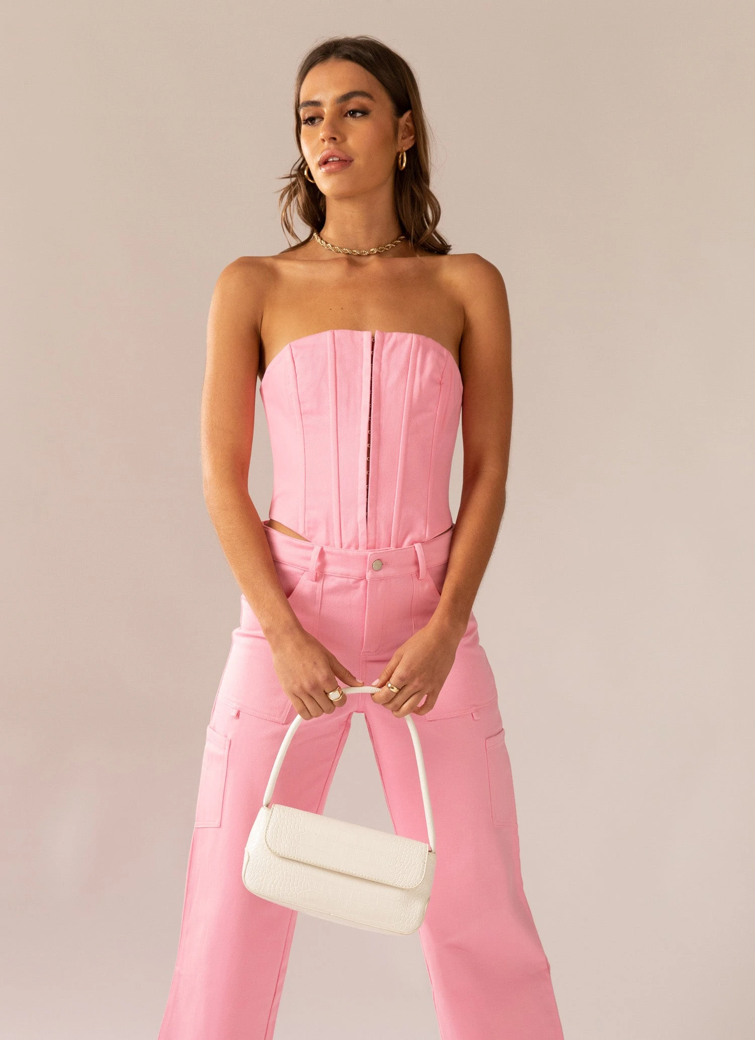 We’re bringing sexy back with the Juniper Bustier Top! A strapless, bustier style cut in a soft v-shape with structured boning throughout. Featuring a contrasting silver exposed zipper at the back and hook and eye closure down the front.