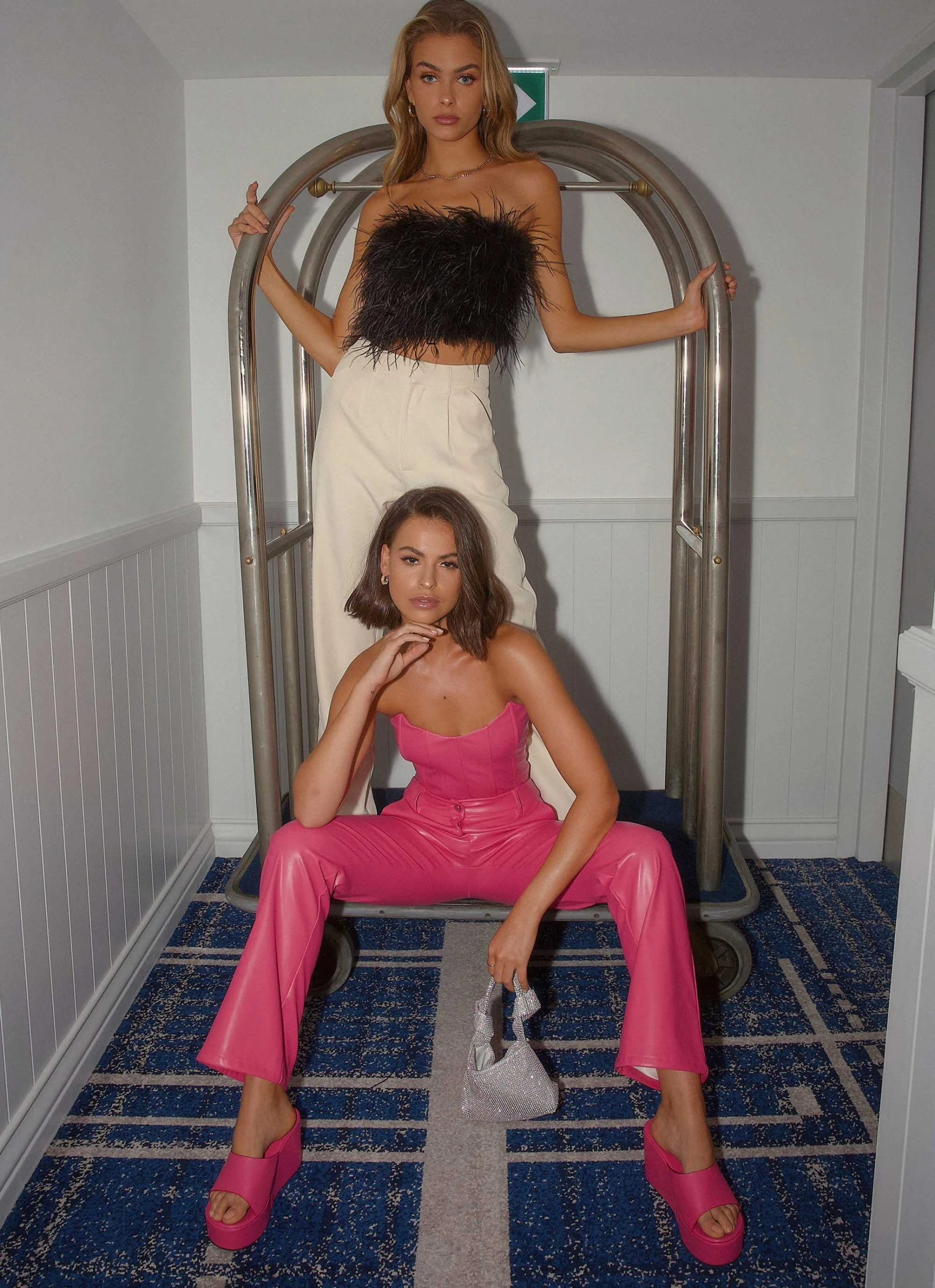 Grab your besties and pop the champagne! Introducing Midnight Soiree, an exclusive party capsule collection.This sparkly NYE inspired collection was designed for dancing on tables, catching every eye underneath the disco ball. Get ready to turn heads and break hearts in sexy maxi dresses, flirty mini dresses and chic jumpsuits featuring cut-outs, feathered detailing and shimmering lurex fabrics. Fashion forward co-ord sets perfect for our party girl muse, can be mixed and matched for a killer unique look. Sparkly heels and accessories inspired by 90s supermodels complete the full party vibe on your night of nights.