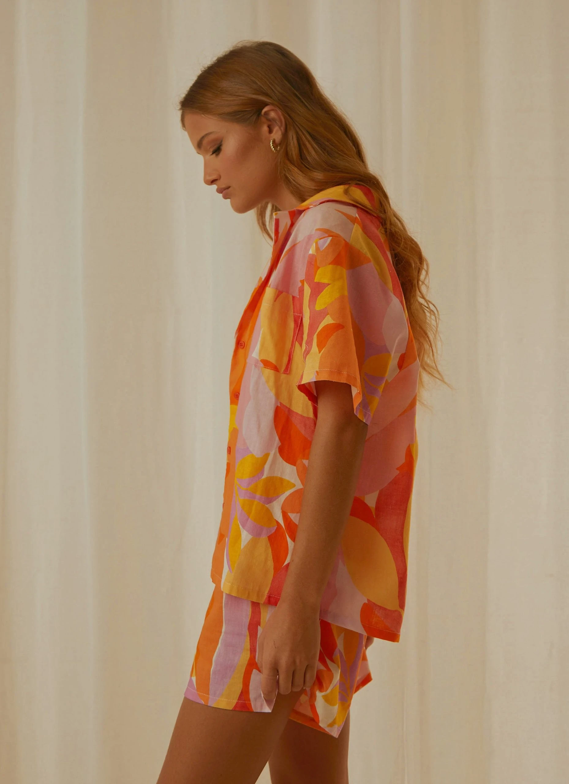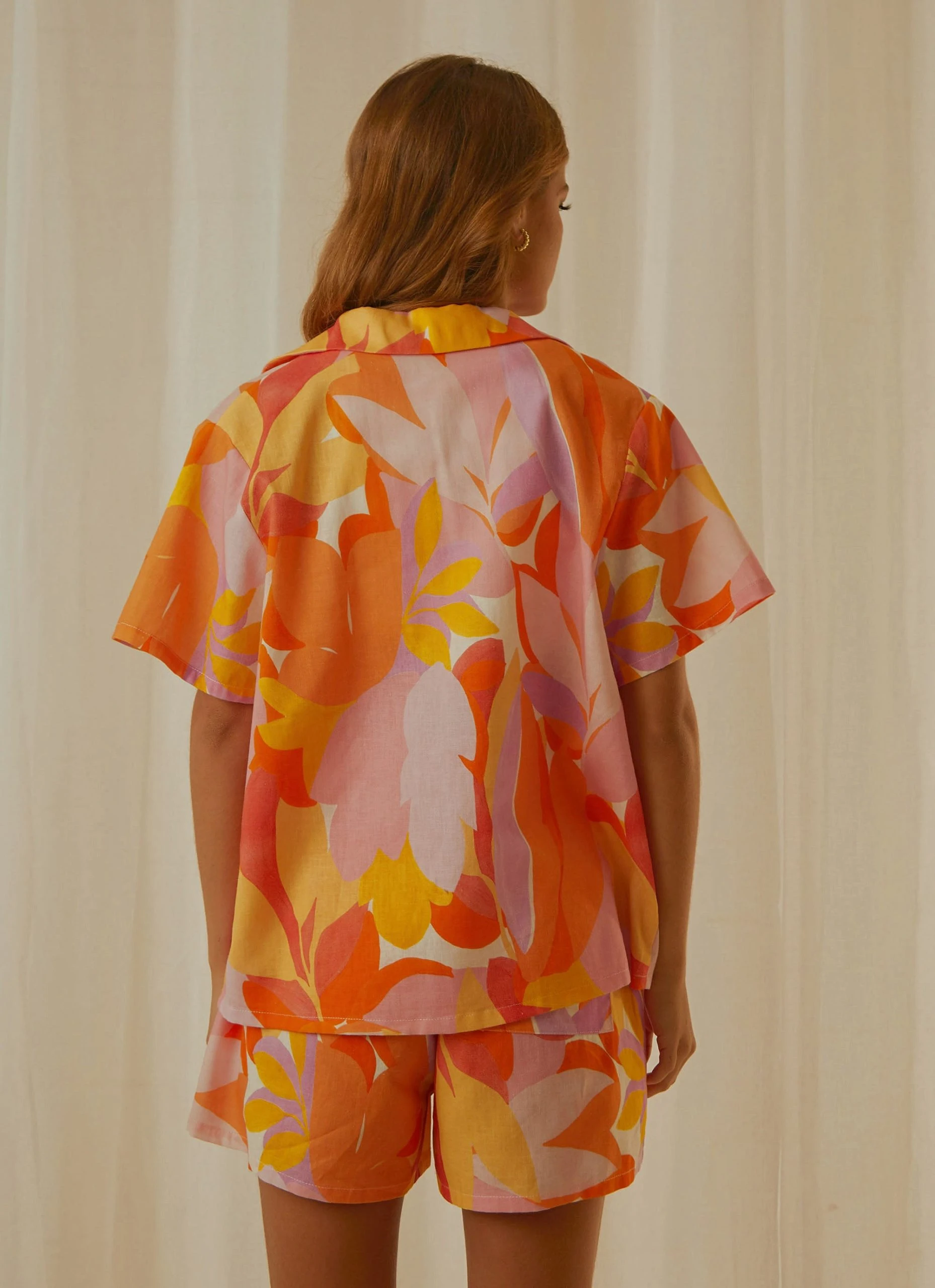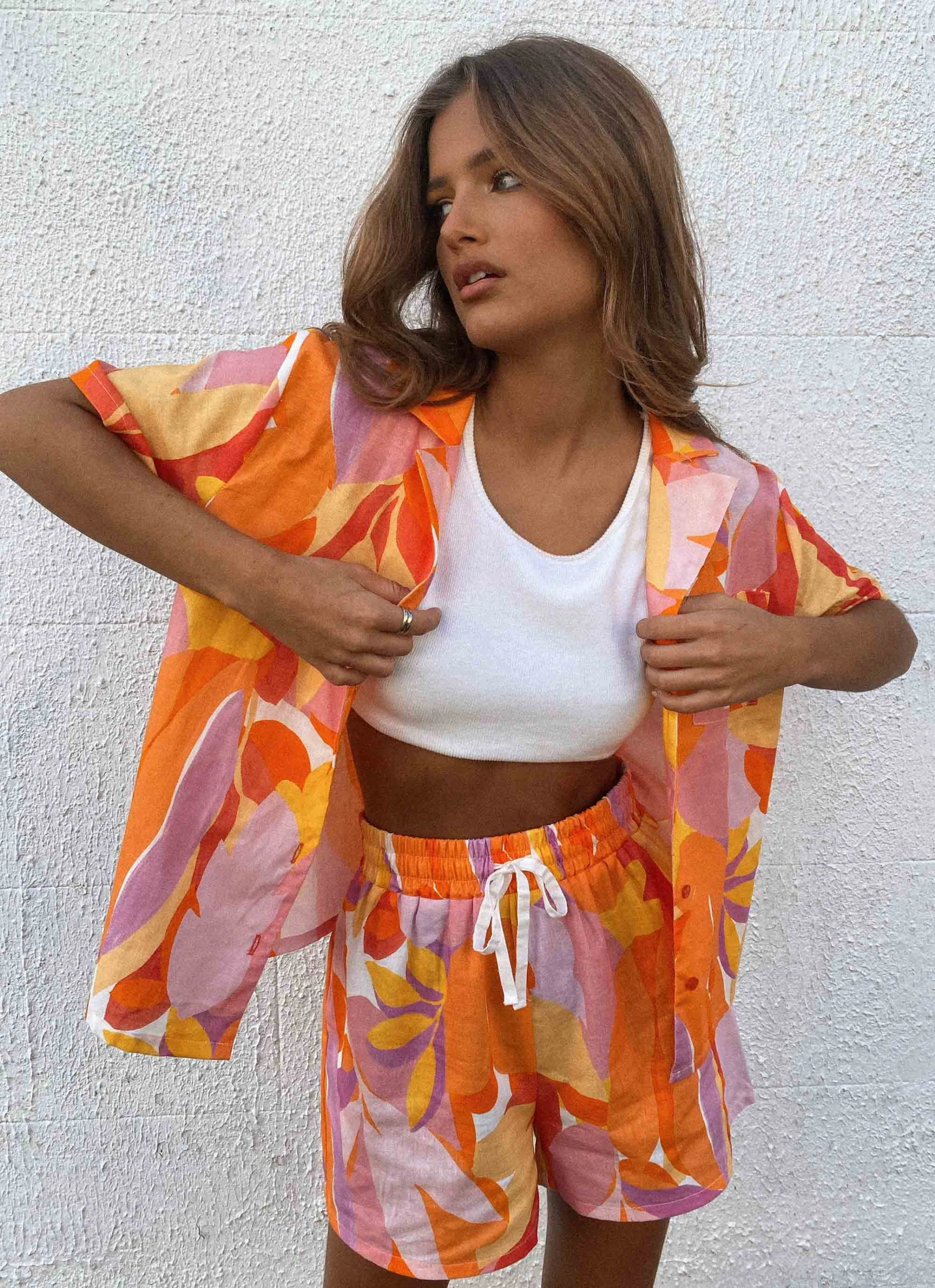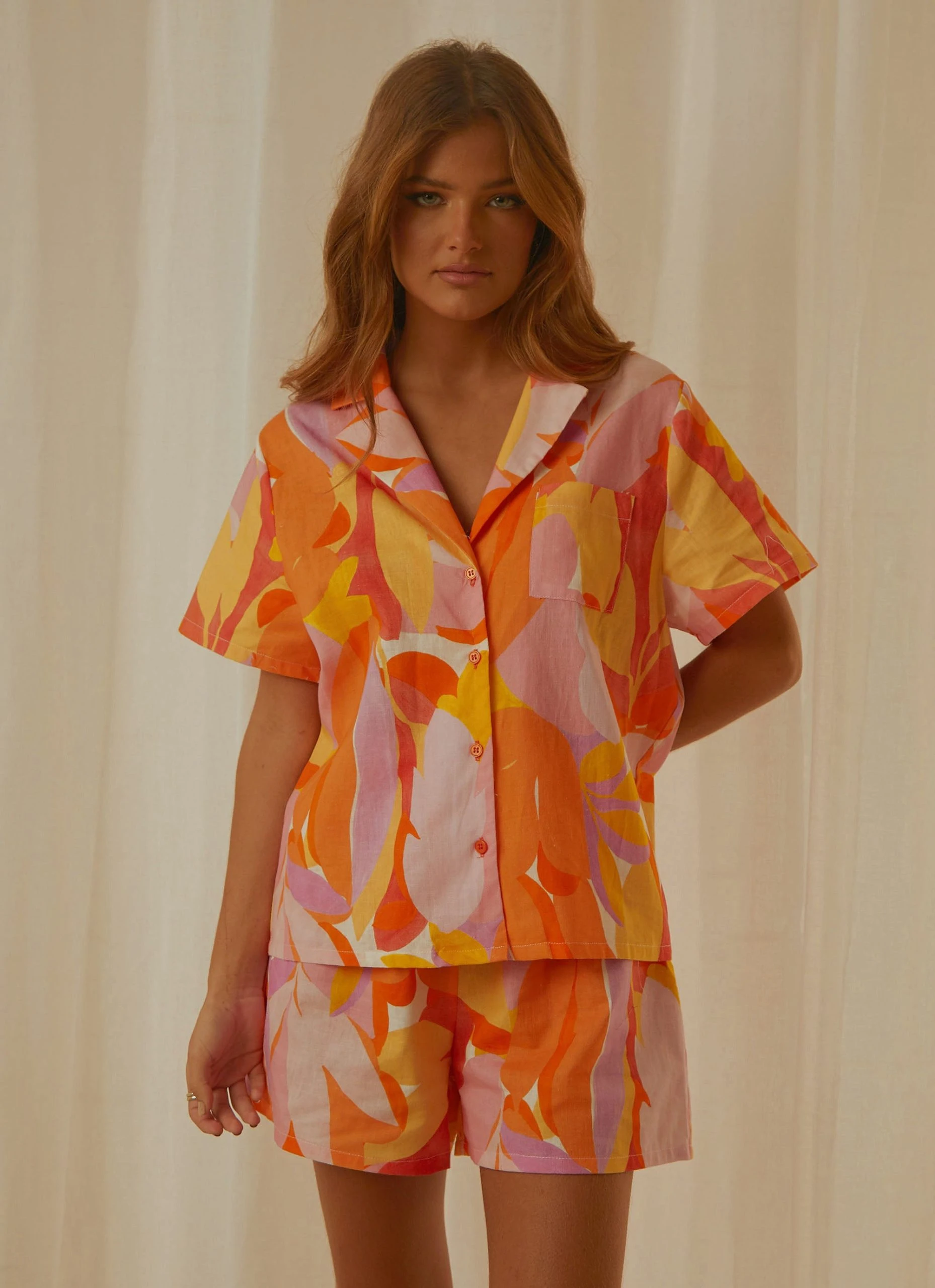 Channel all the vacay vibes in the Meet Me In Malibu Shirt. Throw it on over your bikini for poolside drinks, or pair with a a knitted midi skirt and platform sandals for cool girl vibes.