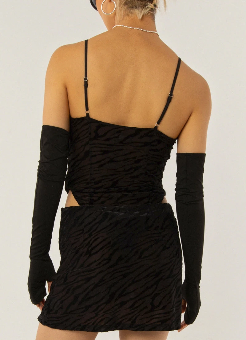 Get ready to turn some heads in this little number! The sexy Put Me First Bodysuit has been crafted in soft sheer mesh with velvet zebra print and featured underwire and adjustable shoulder straps. We love it layered with the Lift Me Up Mini Skirt and styled back with your fave festival boots and gold chunky jewellery.