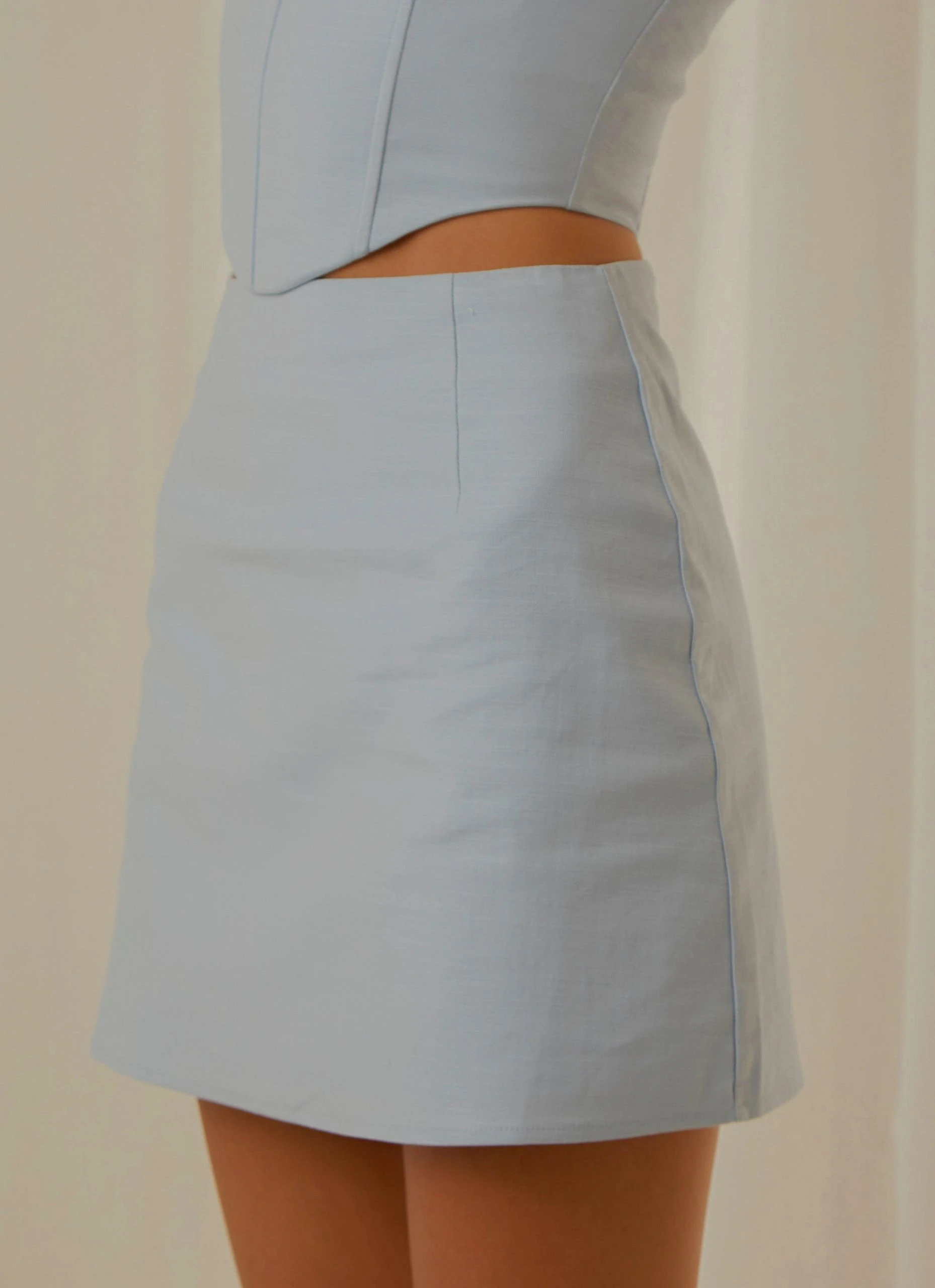 Our Rooftop Drinks Mini Skirt pairs back perfectly with the Pastel Skies Bustier Top, the perfect look for sunset cocktails overlooking the ocean.