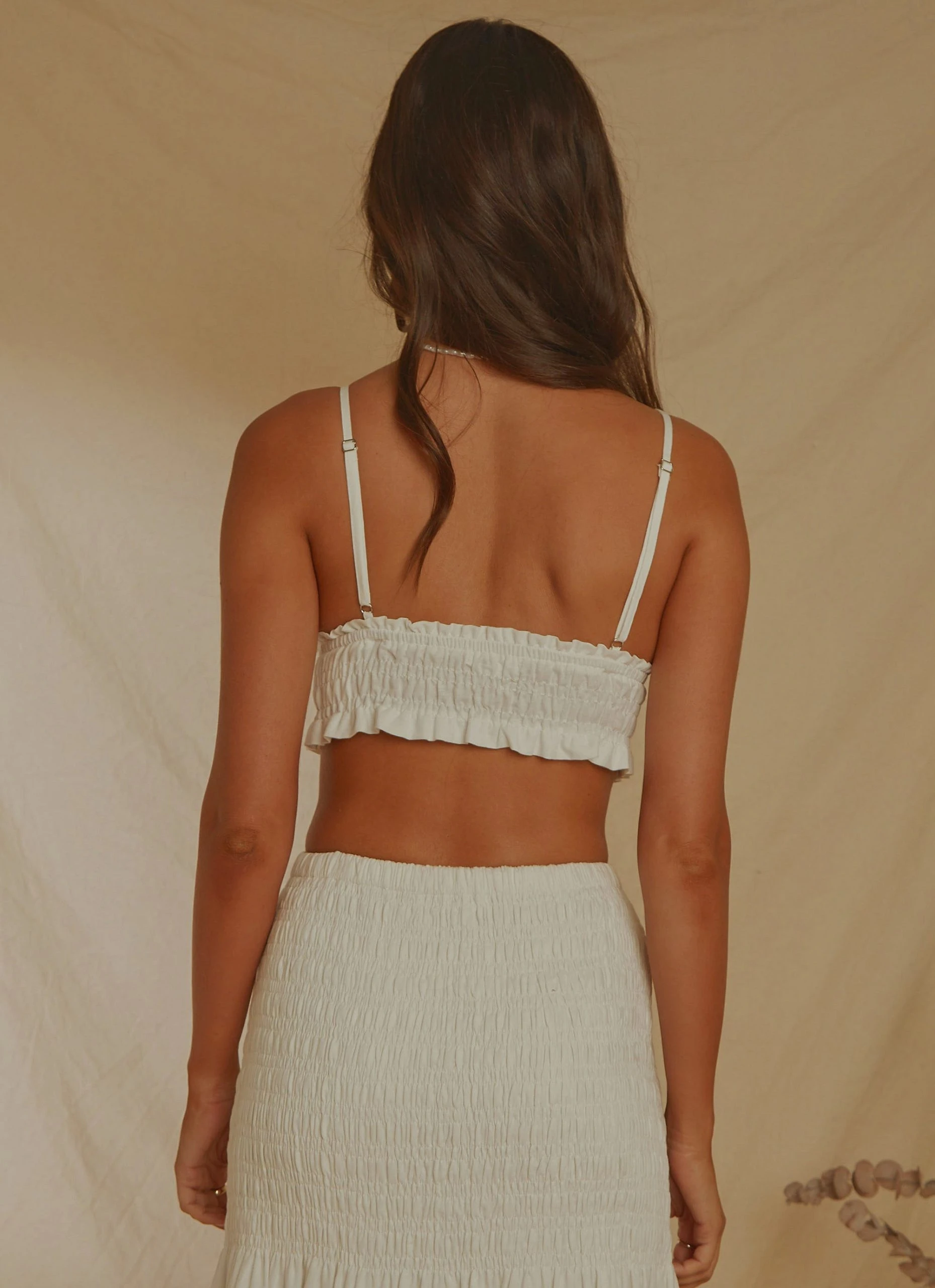 The perfect little crop doesn’t exi….Say hello to our Spring Melodies Top! A crisp linen with shirred detailing along the neckline and through the body. This cute lil crop is the answer to all your summer wardrobe prayers. We love it paired with the European Edition Mini Skirt or Lost Palms Maxi Skirt to fulfil all of your day to night needs.