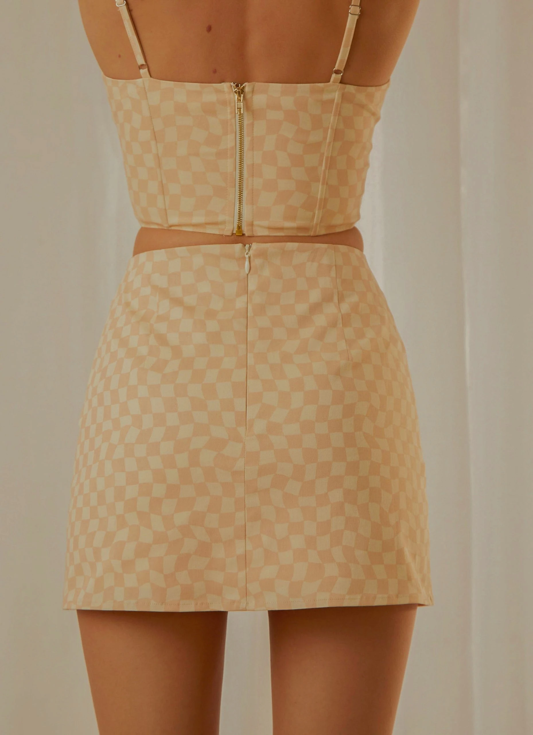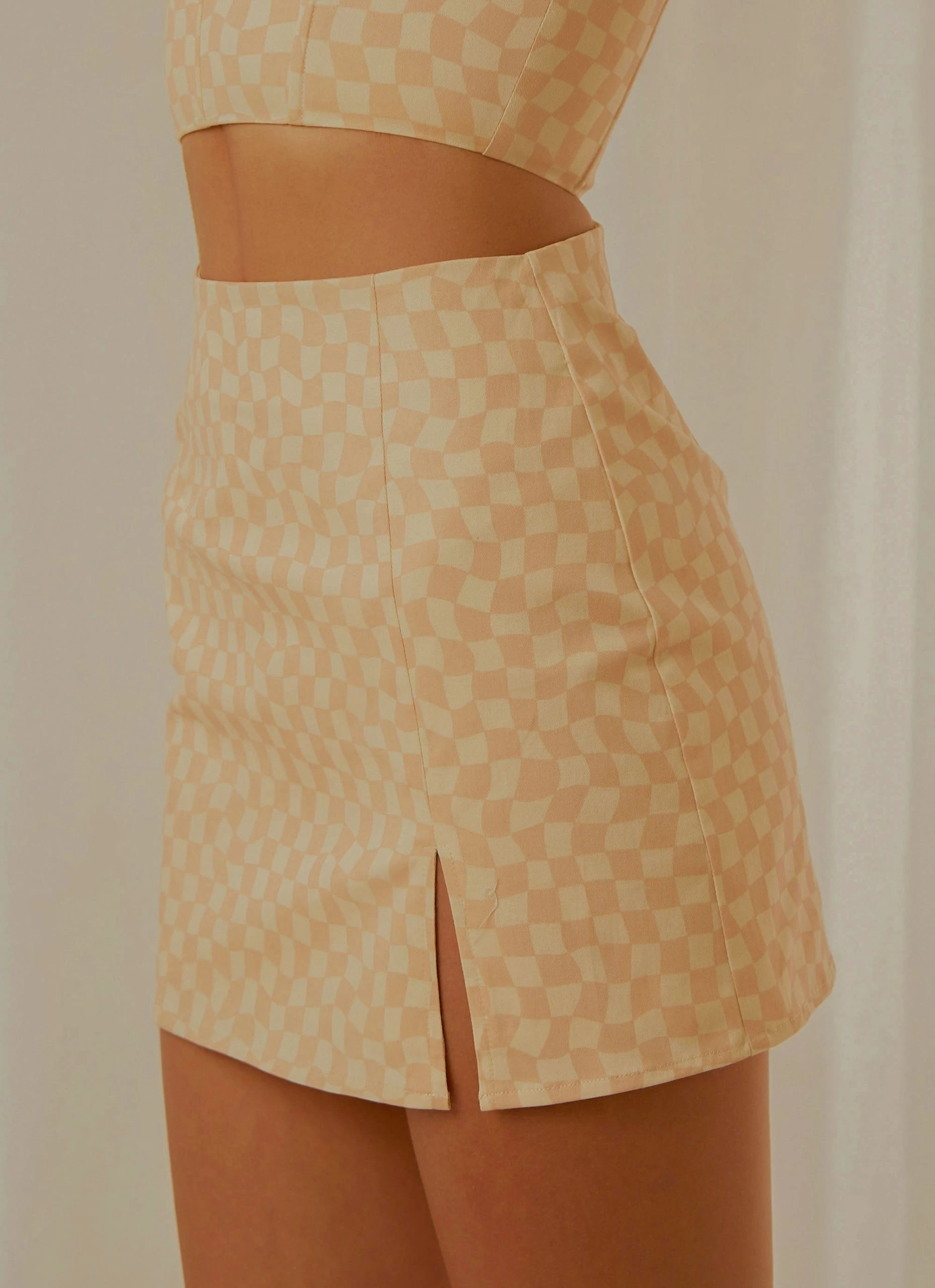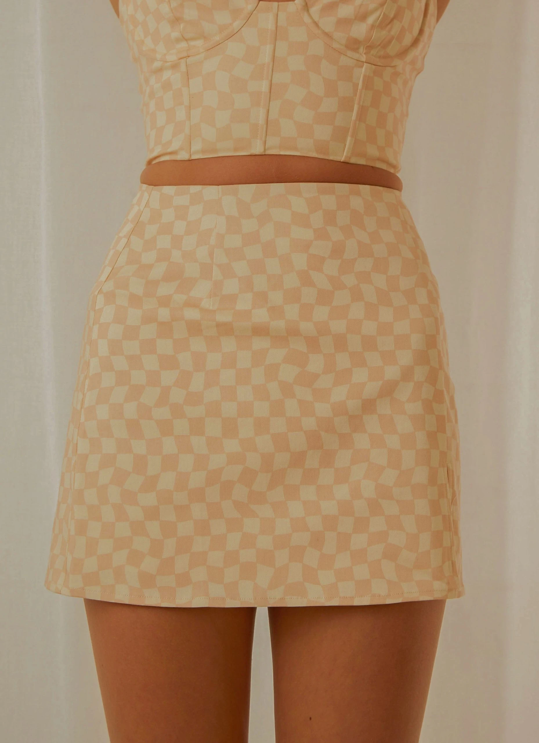 Our Sunday Girl Mini Skirt pairs back perfectly with the Sunday Girl Bustier Crop, the perfect look for sunset cocktails overlooking the ocean.