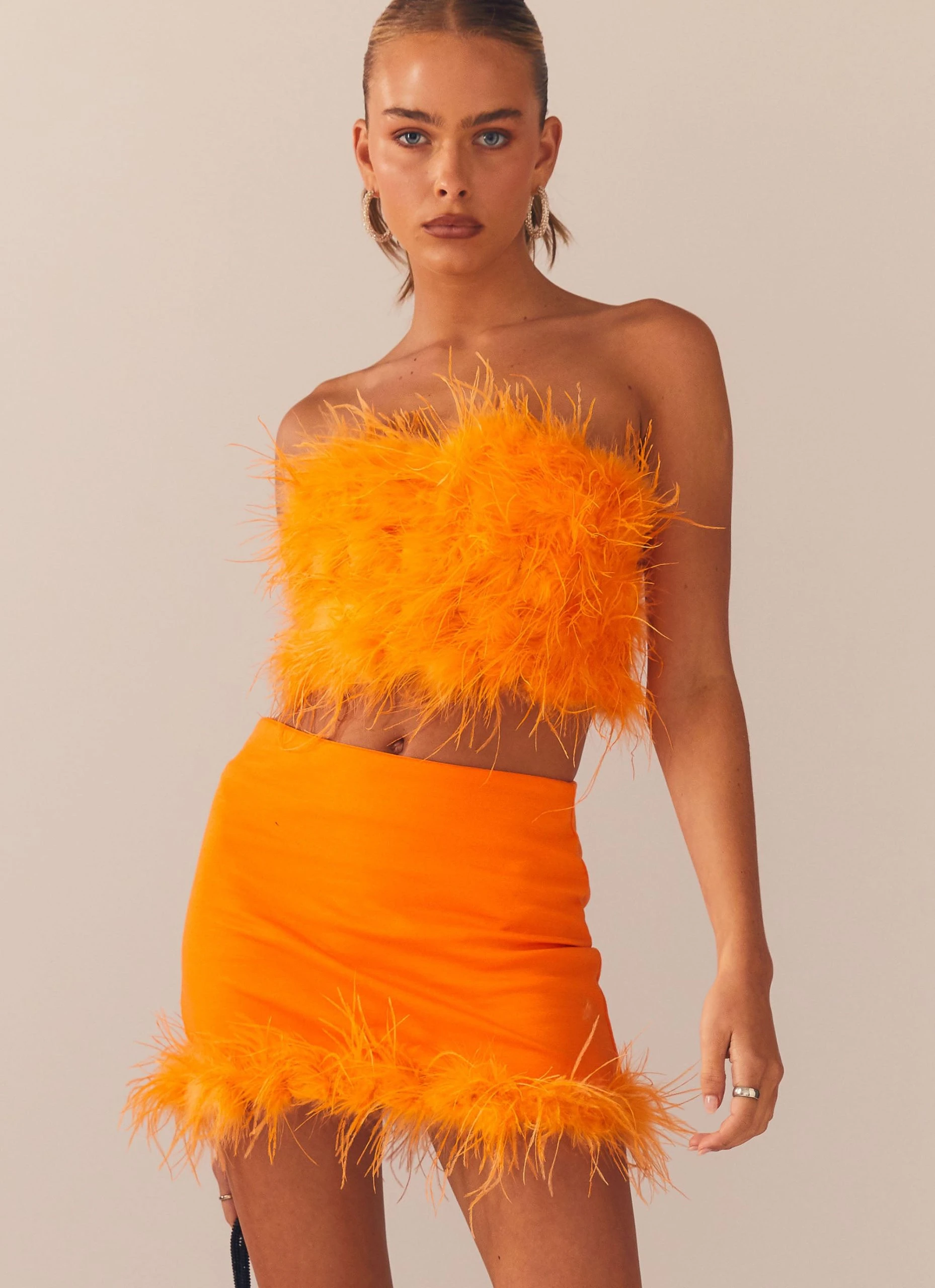 Cue the party playlist, pop the champagne and get ready to dance the night away in this lil number! The Night Is Ours Feather Crop pairs back perfectly with the Lucia in Love Skirt and you’ll be sure to turn some heads.