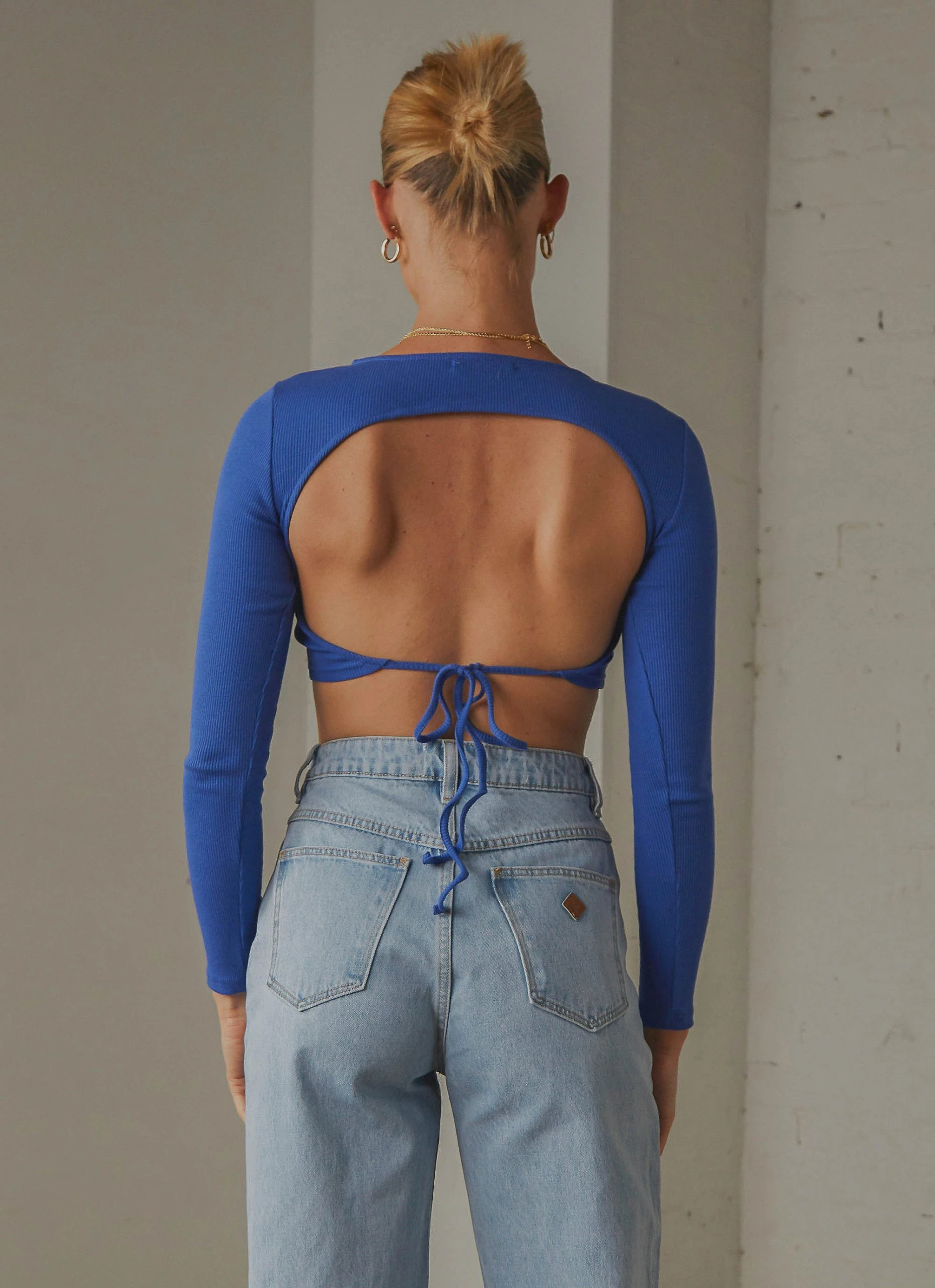– Backless with tie back detail