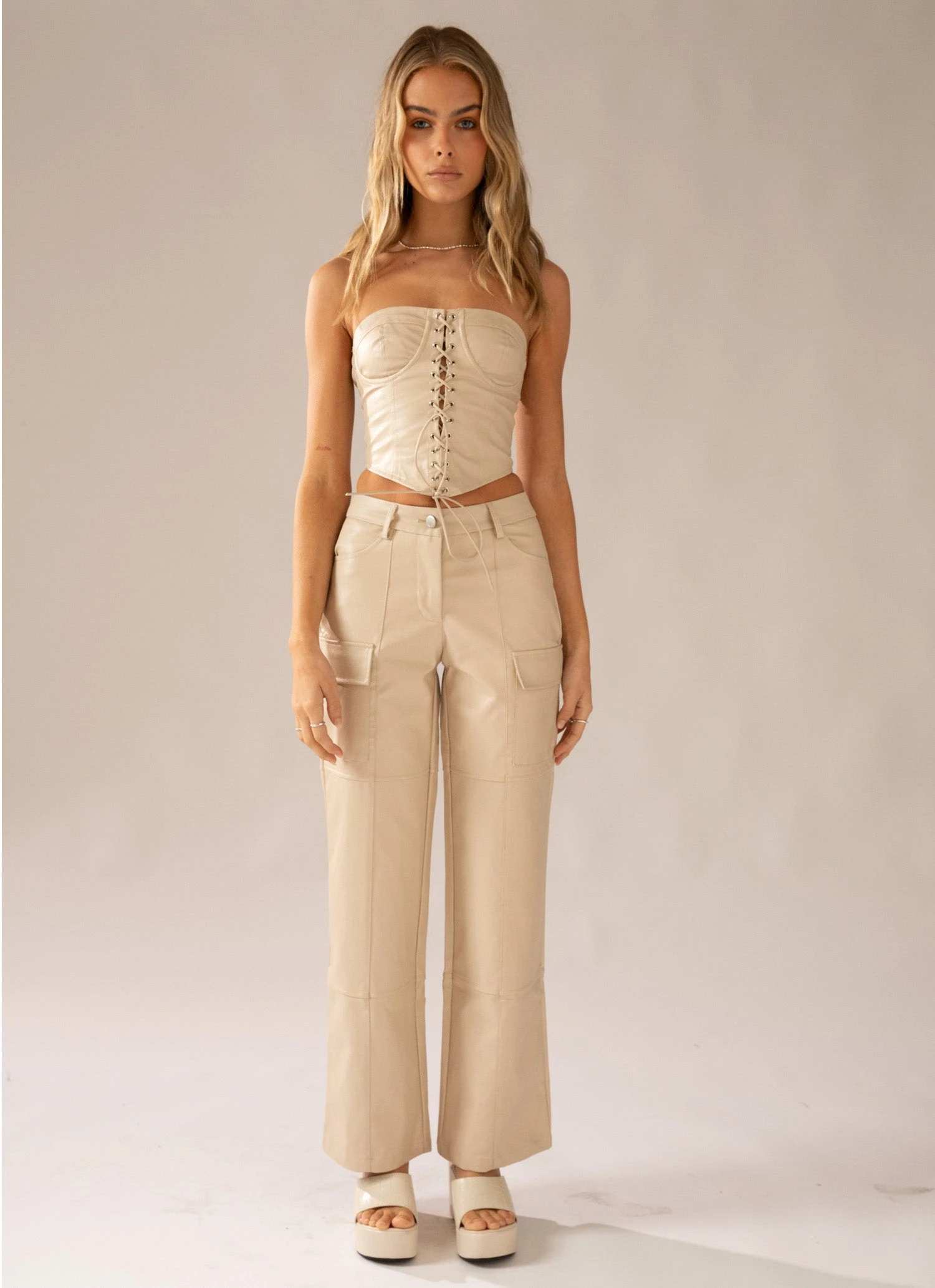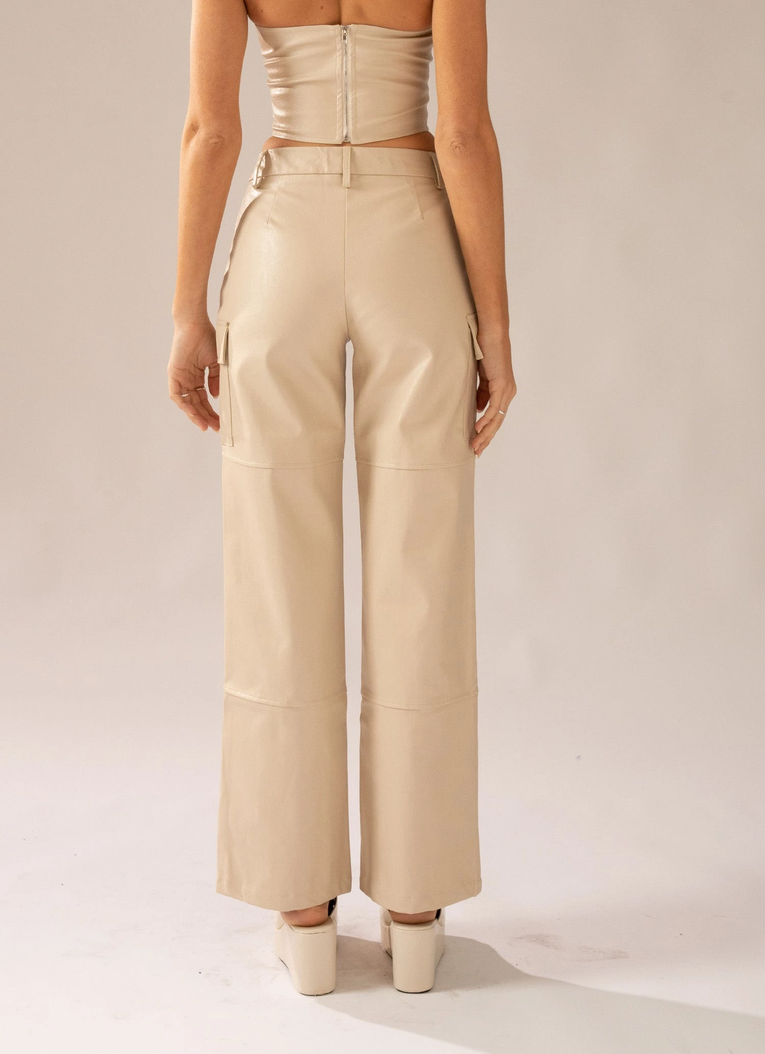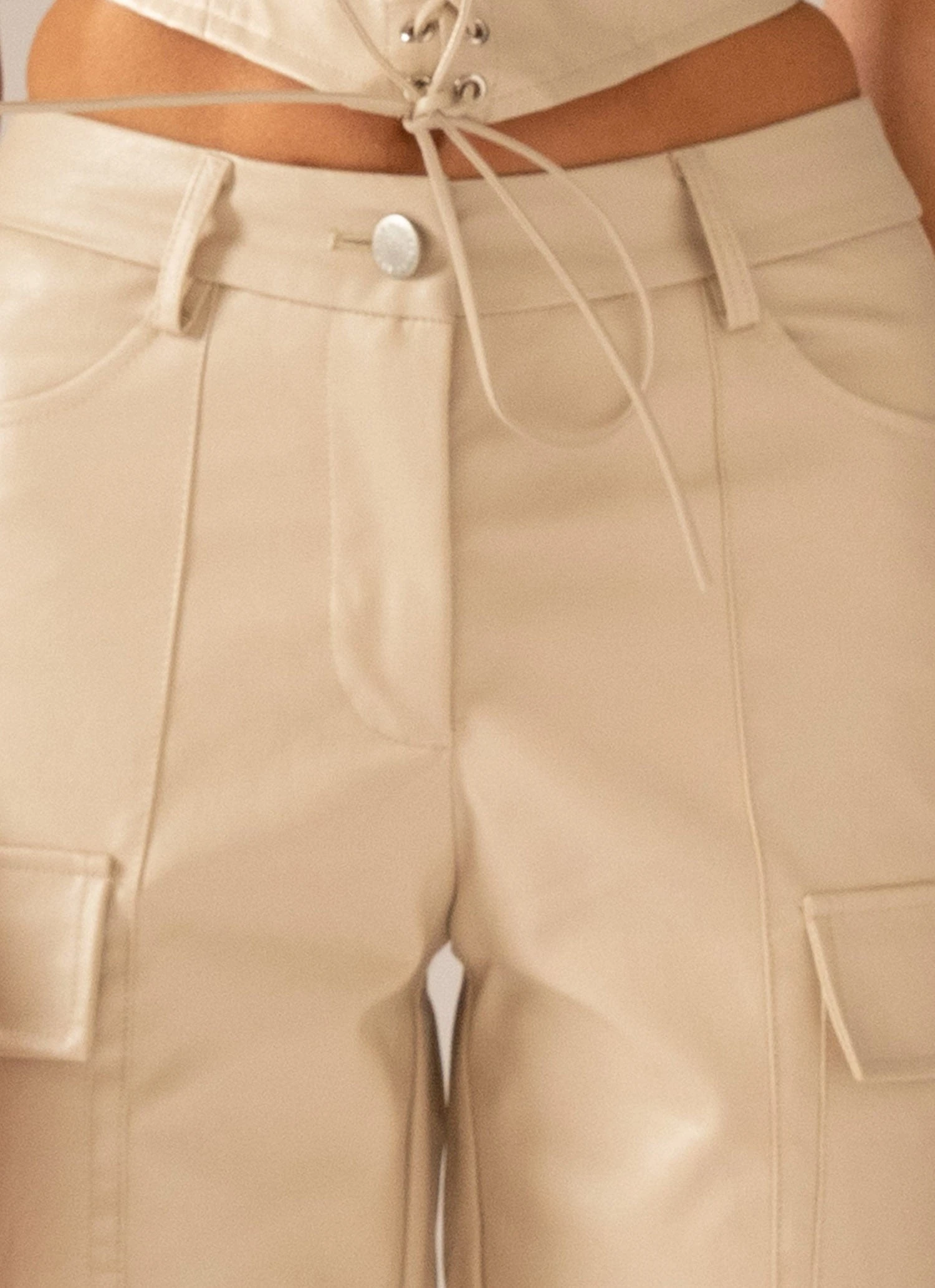 Peppermayo Exclusive Walk On The Wild Side PU Cargo Pants – Stone
