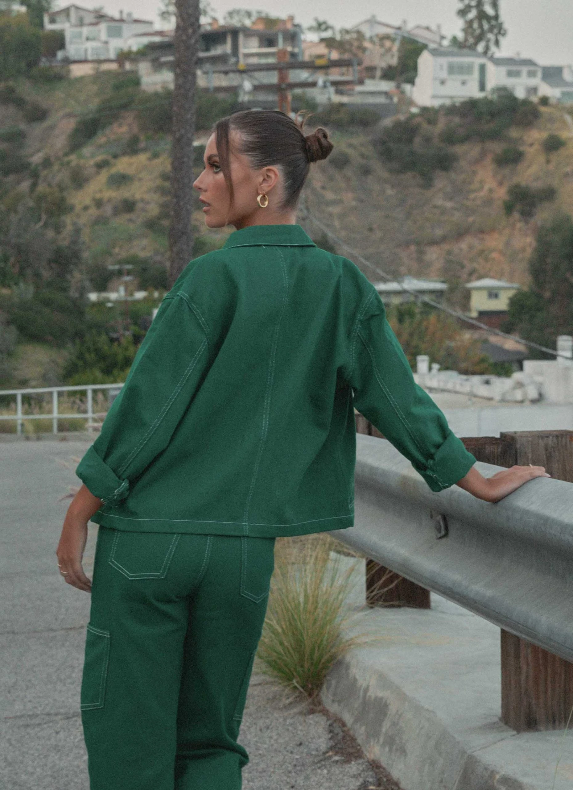The wardrobe staple every cool girl needs. You can’t go past a button down shirt especially when it’s crafted in military green cotton drill and features white stitching. We love it styles open as a shacket with a cute white crop or buttoned down and paired with the Explore Drill Skirt.