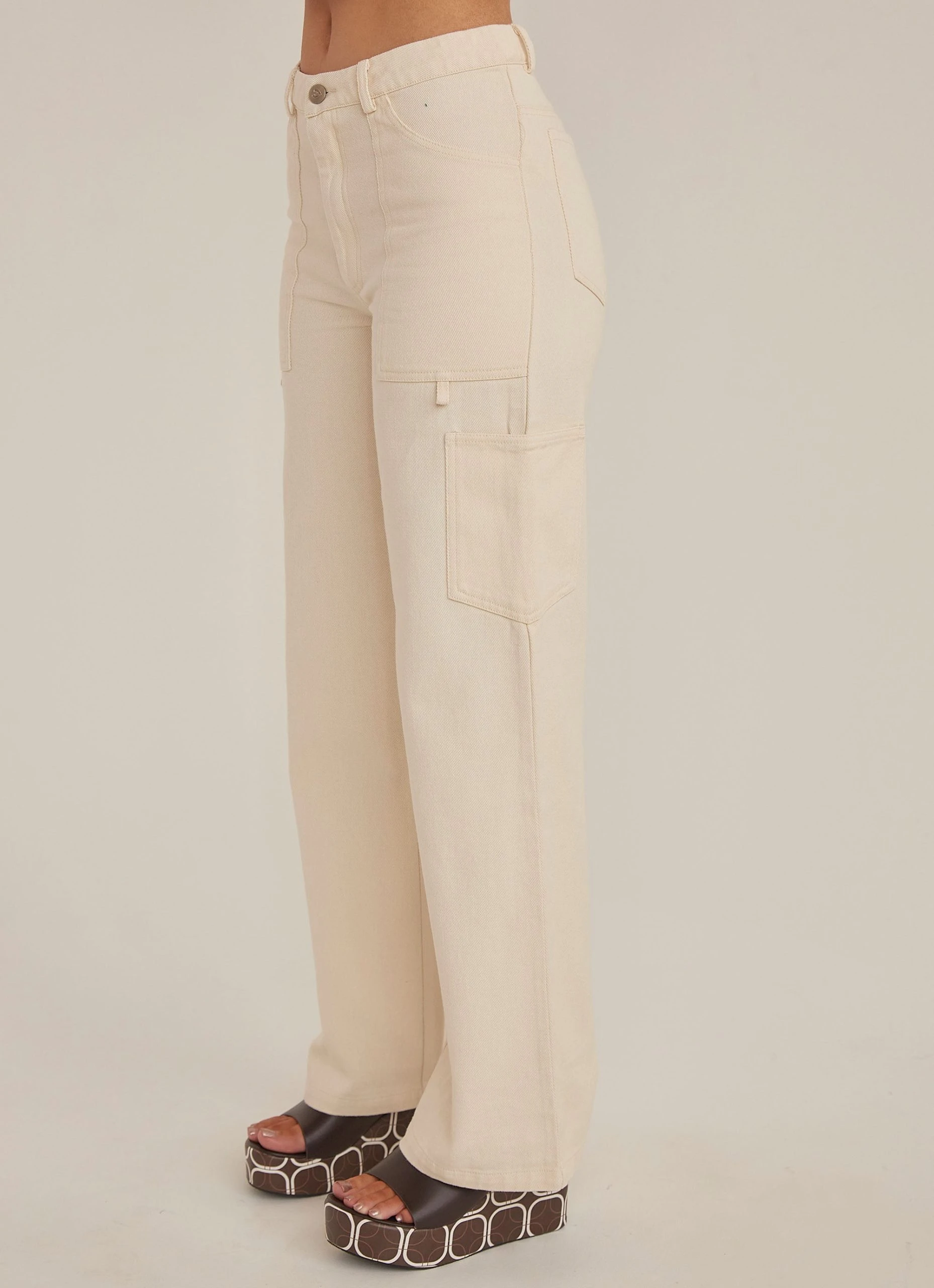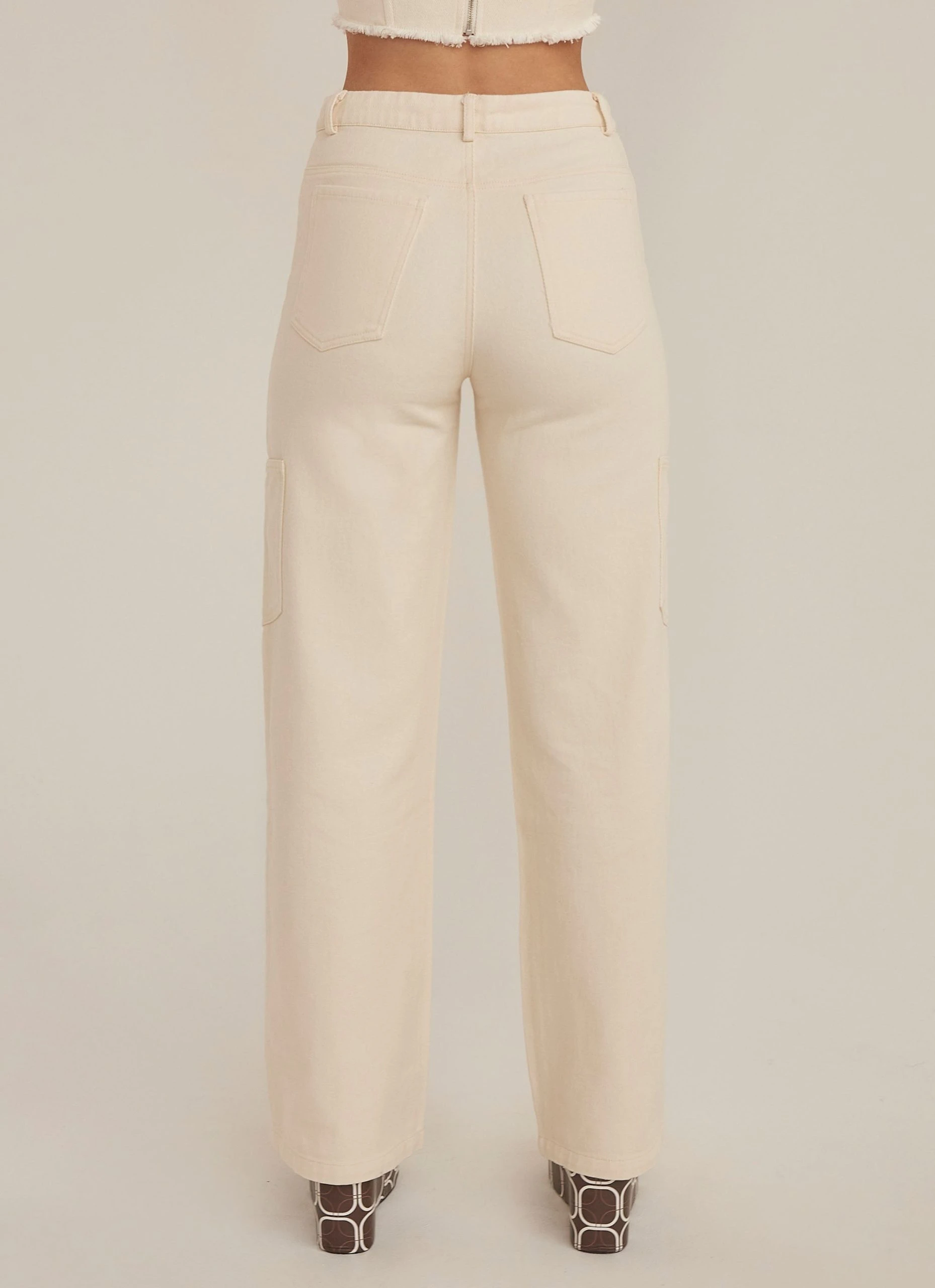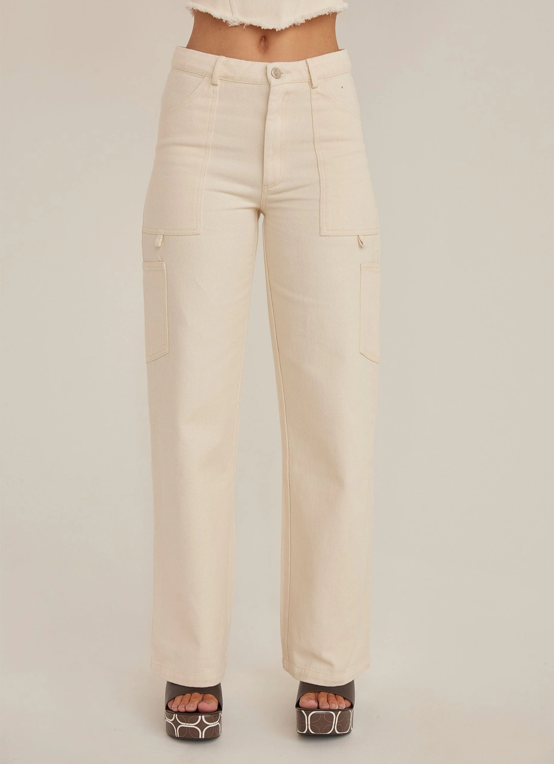 So on trend it hurts! Postcard Drill Carpenter Pants have been crafted in ivory drill are designed to be worn higher on hips and feature 6 pocket design. Day dressing done right paired back with a basic white tank or complete the look with the Sundown Vibes Drill Bustier.