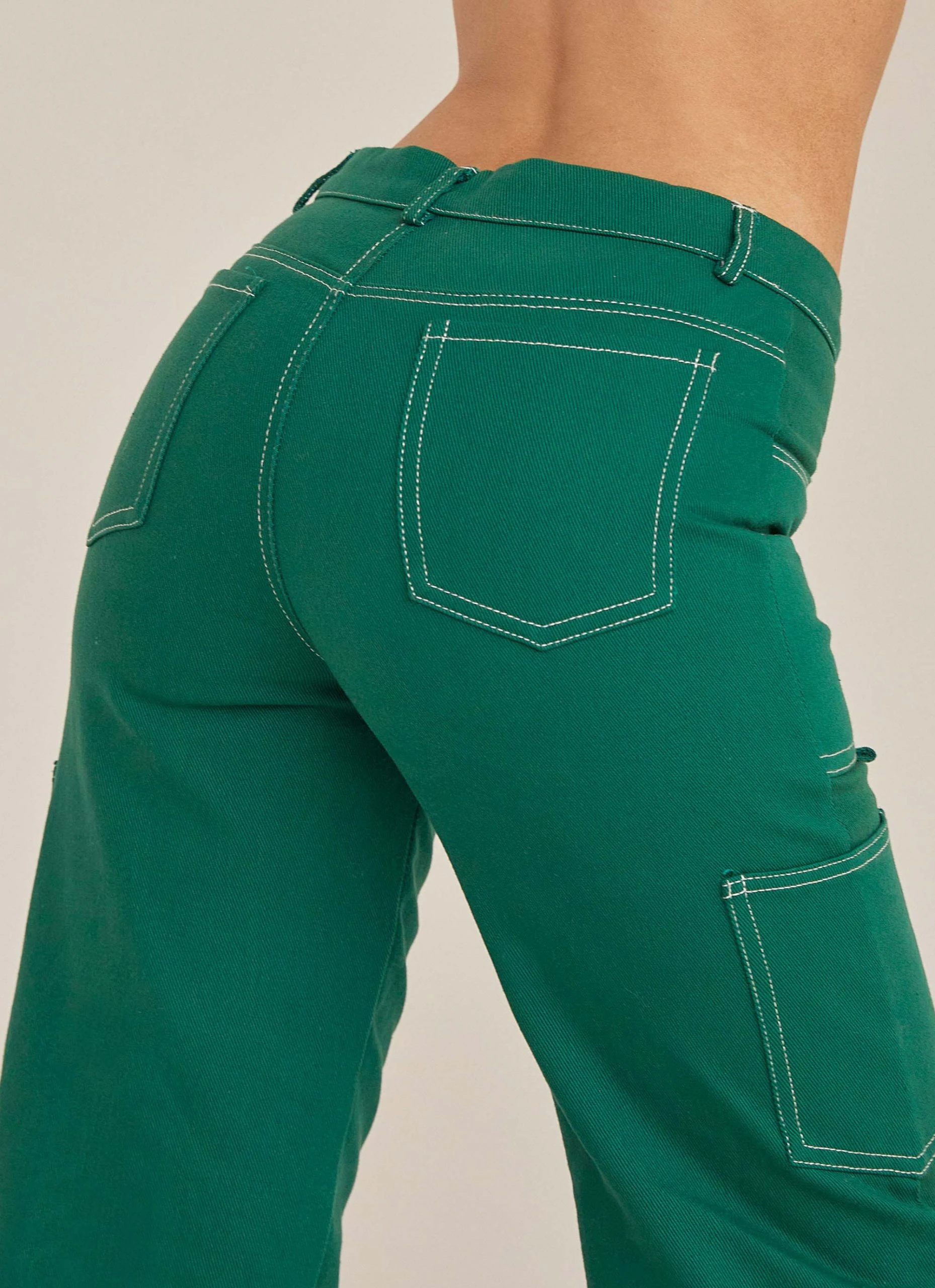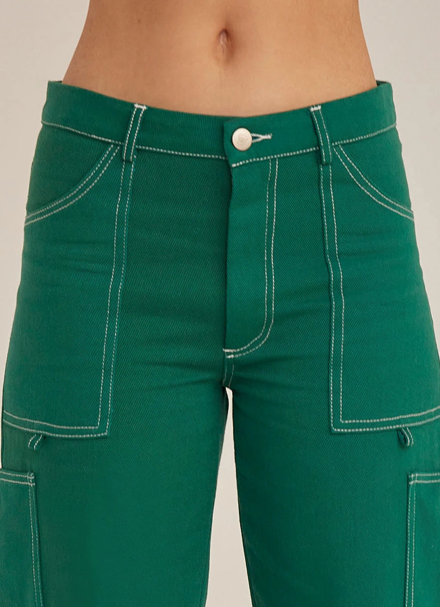The wardrobe staple every cool gal needs! Made from cotton drill in military green with white stitching. Day dressing done right! We love them paired with a crisp white tank and gold jewellery.