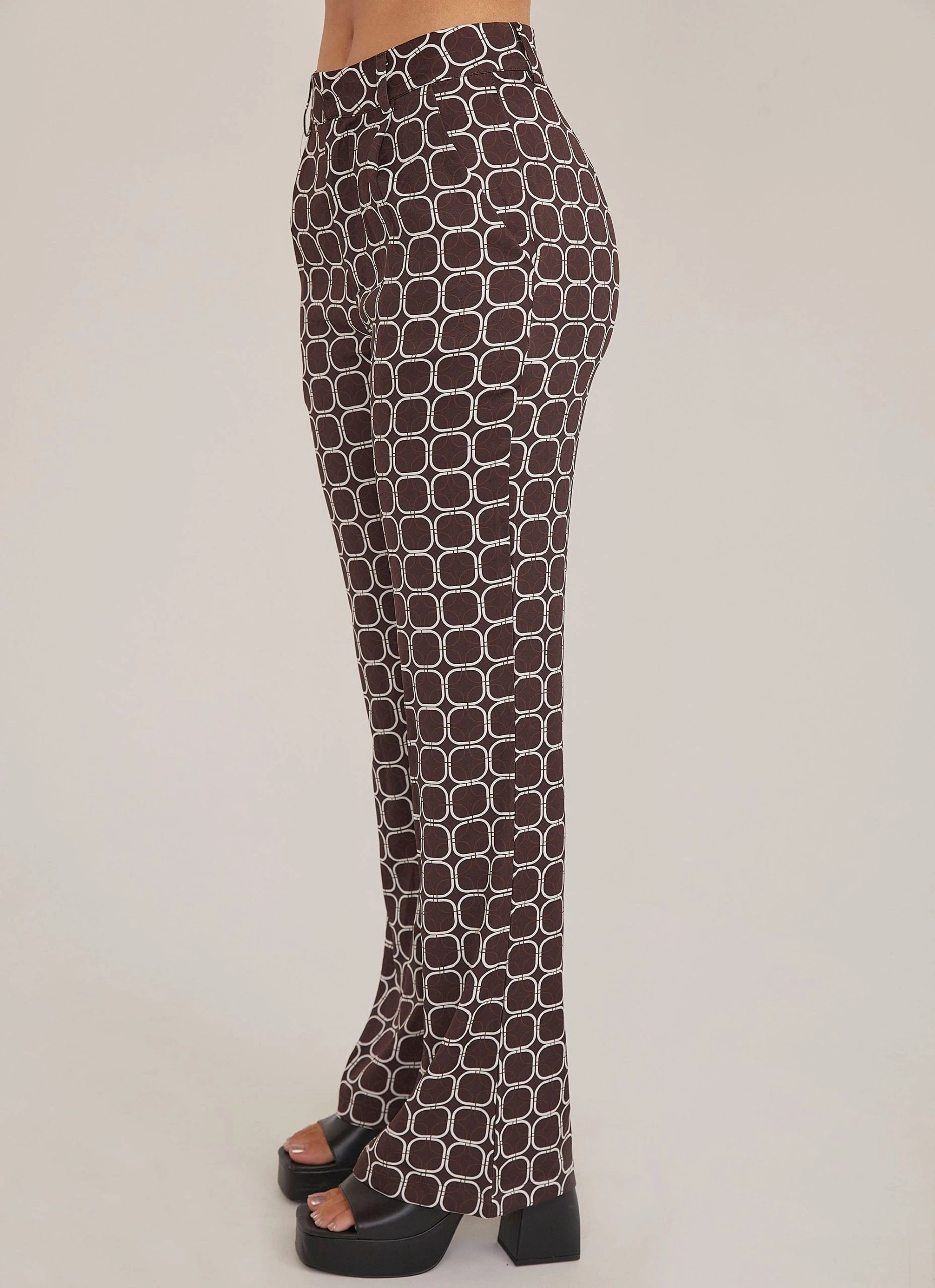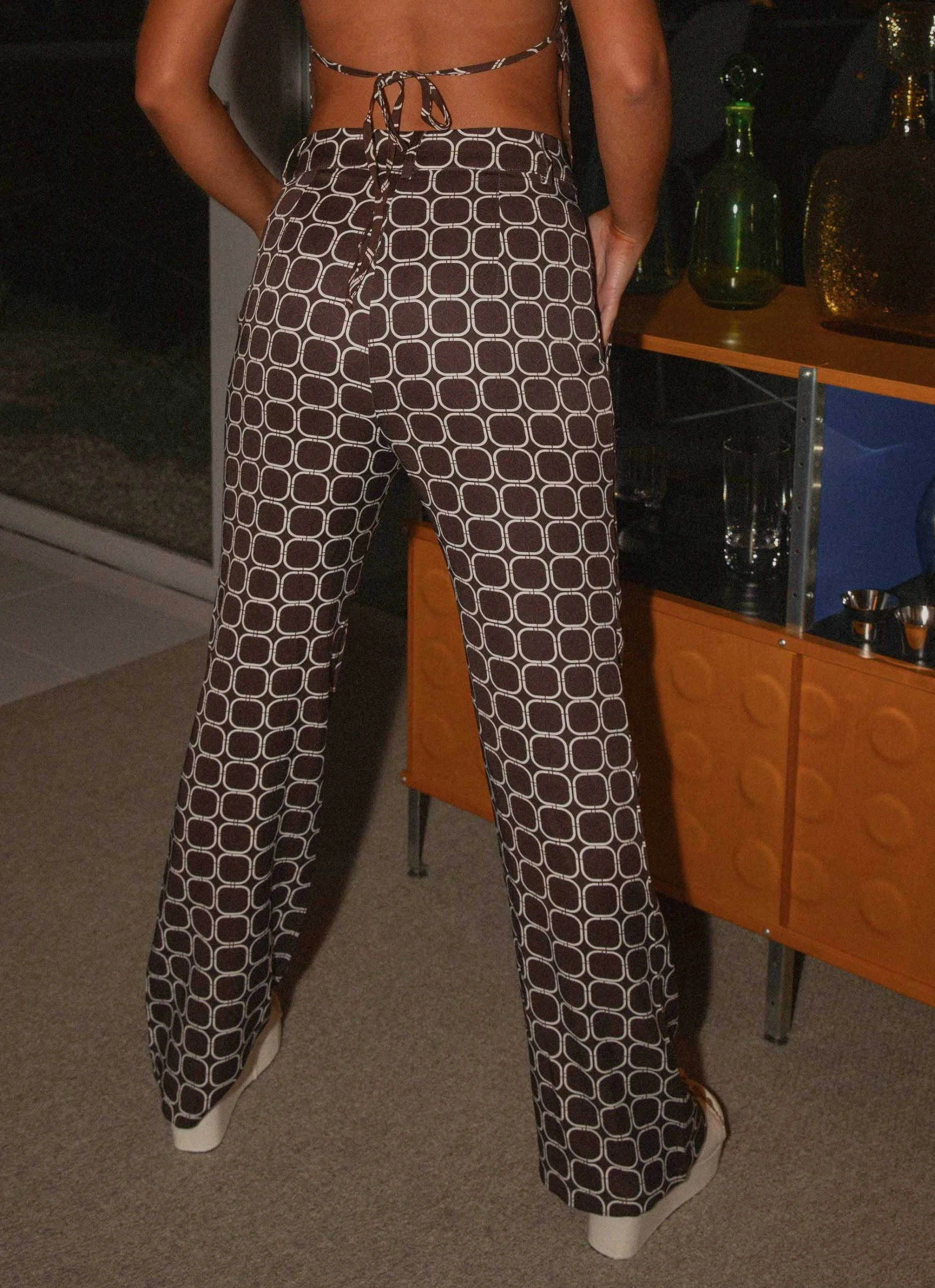 The ultimate boss babe look! The Romeo Pant features a groovy geometric print with 2 pocket detailing and fastened waisted with belt loops. Bring the heat and pair them with Cobain Crop Shirt and mules.