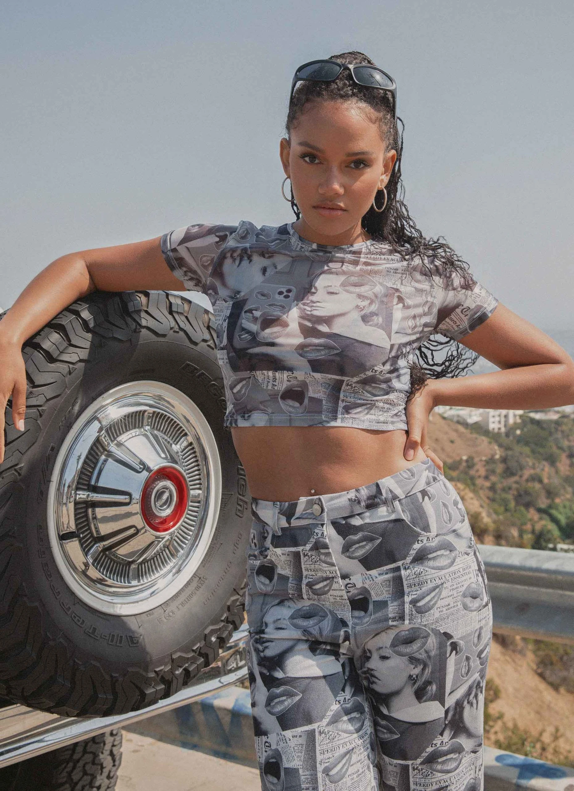 We’re feeling all the 90’s vibes in the Subway Style Mesh Baby Tee. A slim fitting cropped tee featuring our exclusive Riley Collage print on sheer mesh. We love it with your fave vintage denim and sneakers.