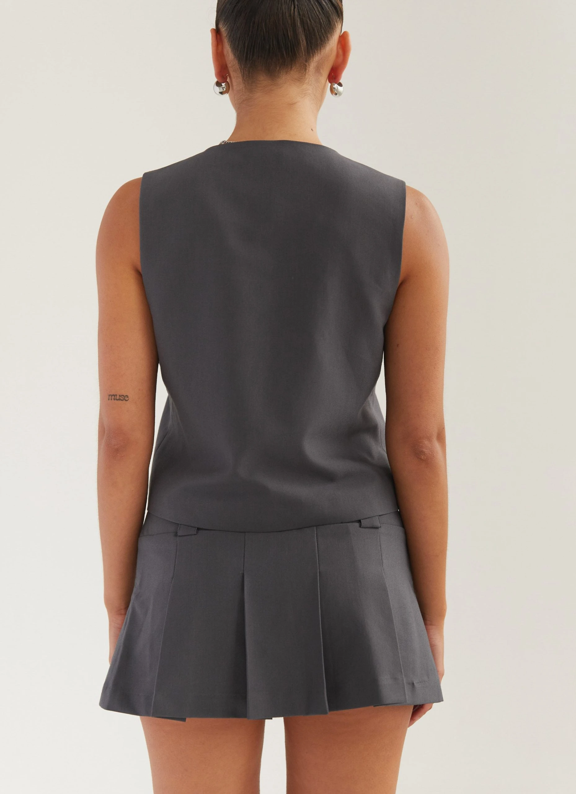 Sexy and sassy in the Dipped In Drama Mini Skirt. This cute ‘lil mini skirt is pleated with a wide fastened waistband. Complete the preppy look and style it back with the Cartwright Vest Top.