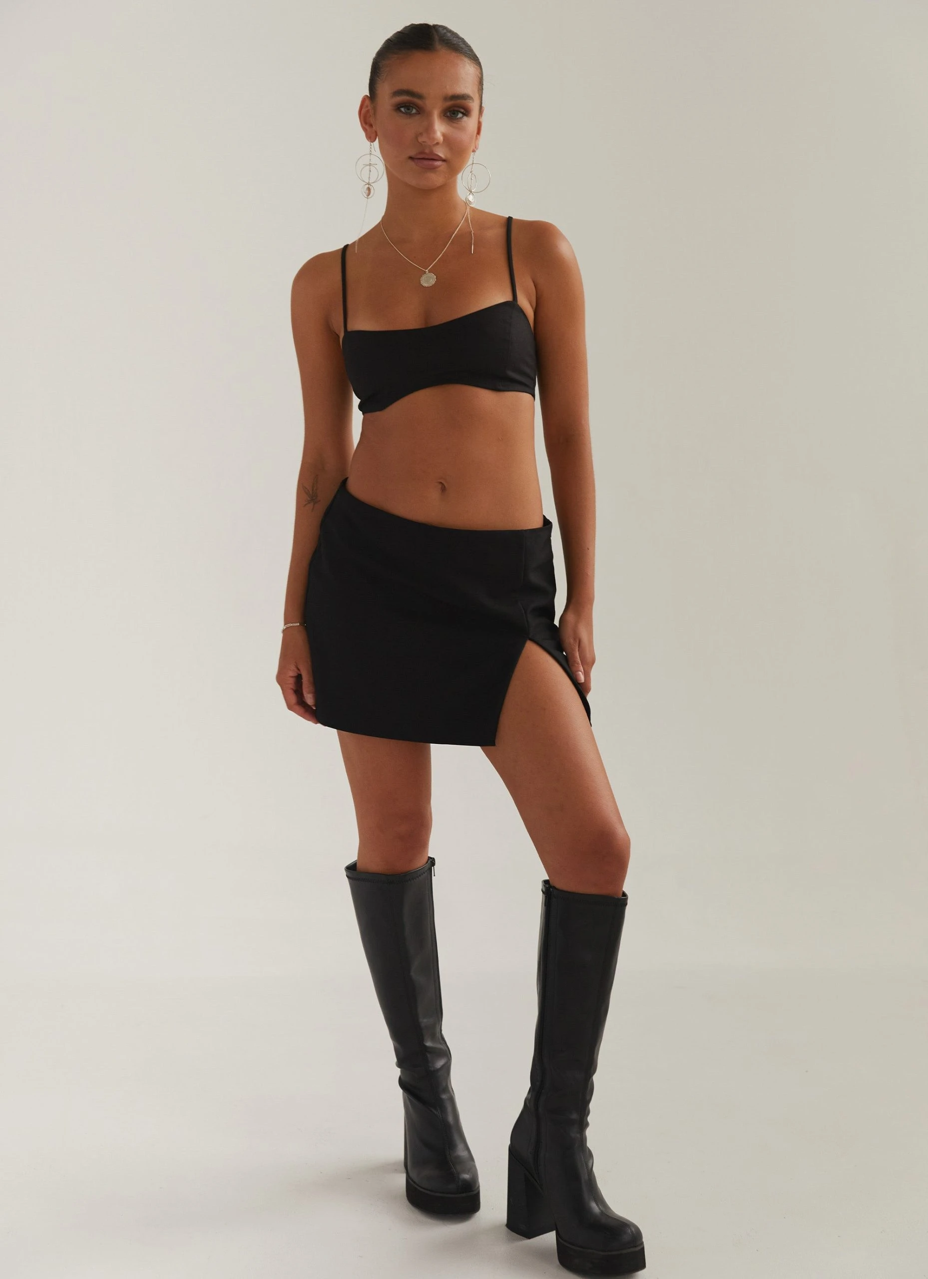 Calling all Peppermayo party girls! The Studio Sun Mini Skirt has been handpicked for your wardrobe! Designed to be worn lower on the hips, this cute -lil mini has a sexy split on the left thigh and invisible zipper closure on the side.