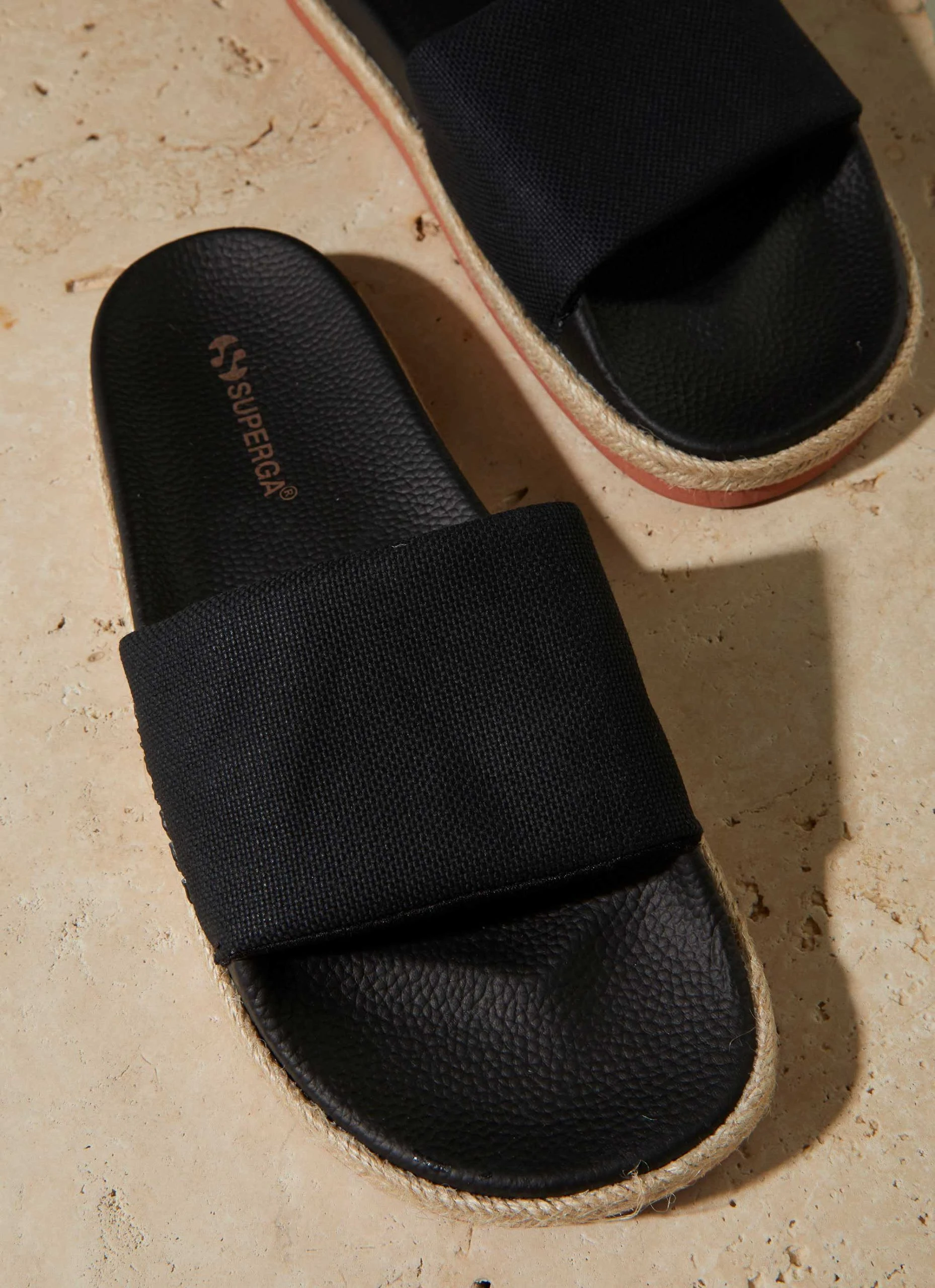 Slip on our latest Superga addition to our slides range. Getting a luxe update, our rope linen slide is perfect for any summer outfit. With an upper in linen and rope detail accents.