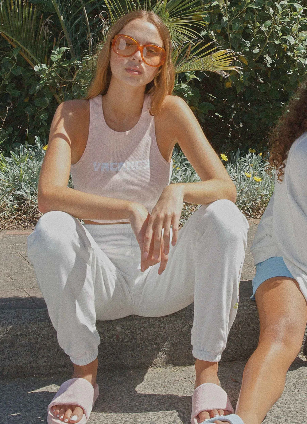 Romance the summertime in our Getaway Lovers singlet. This super cropped lil baby is the perfect piece to complement your holiday glow, we love this with high waisted vintage denim cut offs and terry slides.