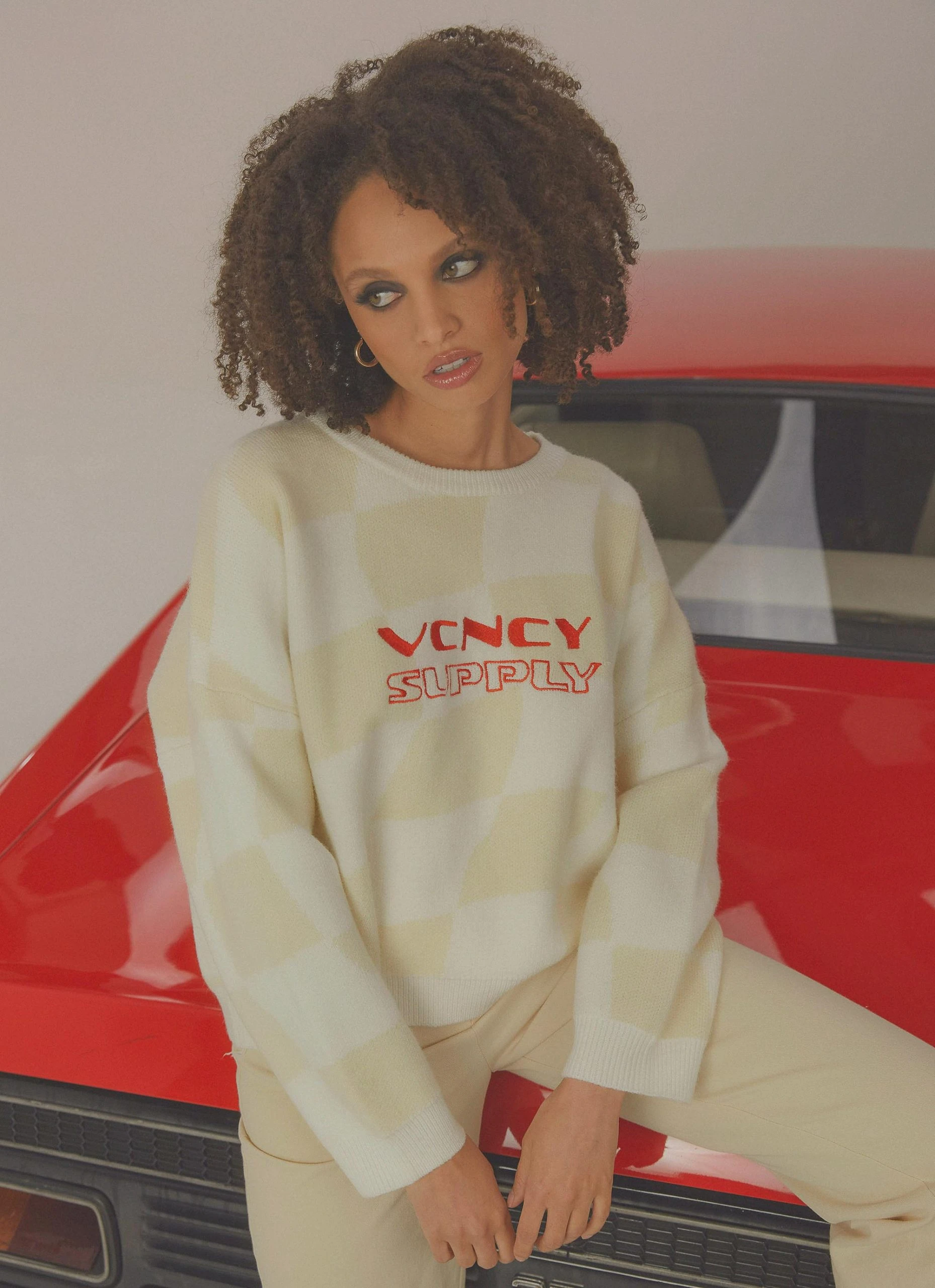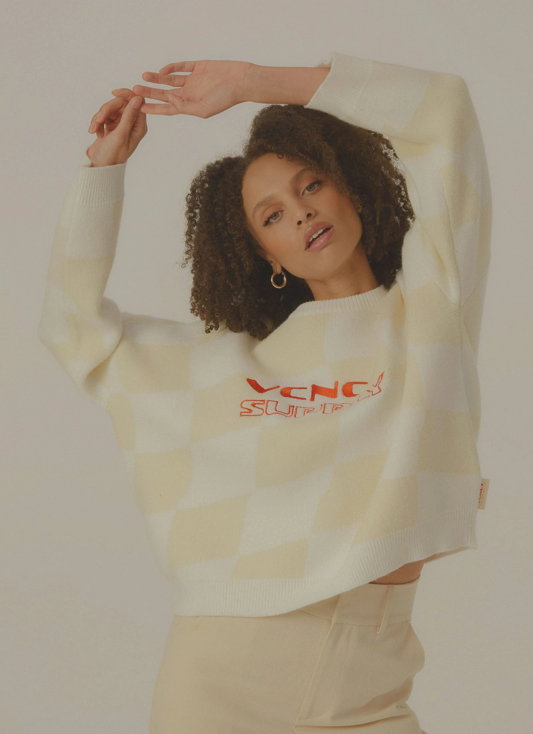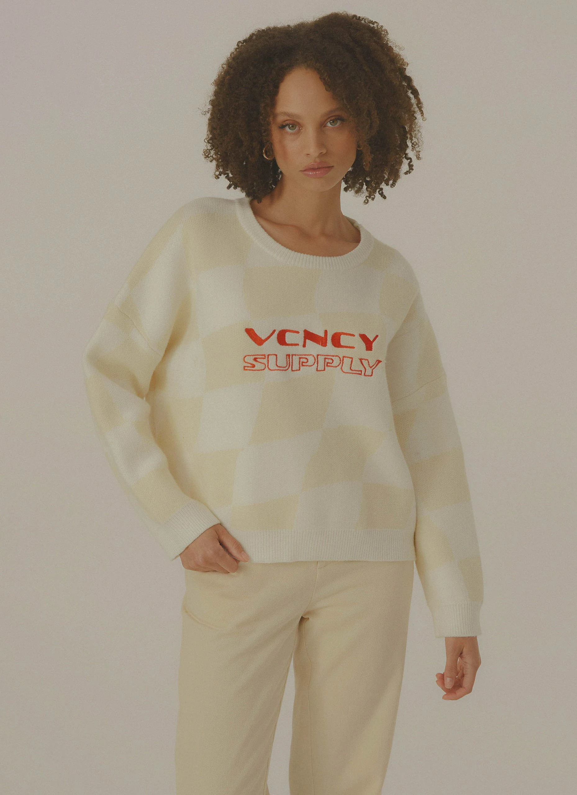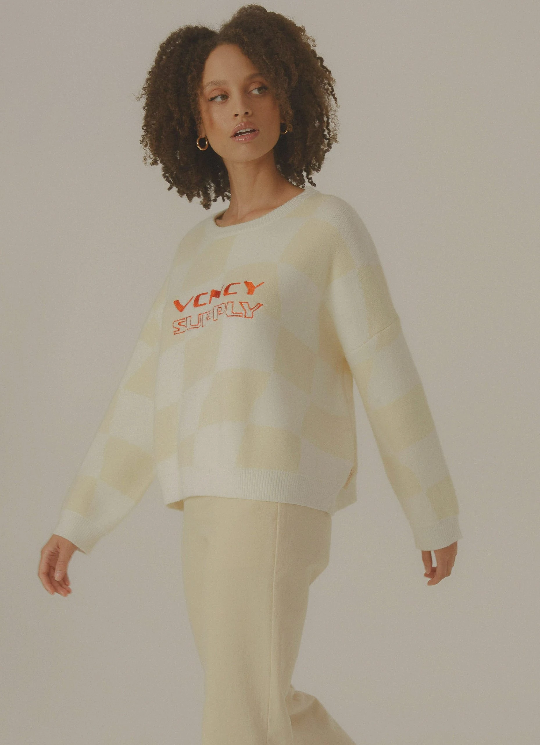 Vacancy Supply Grand Prix Knit Jumper – Off White Check