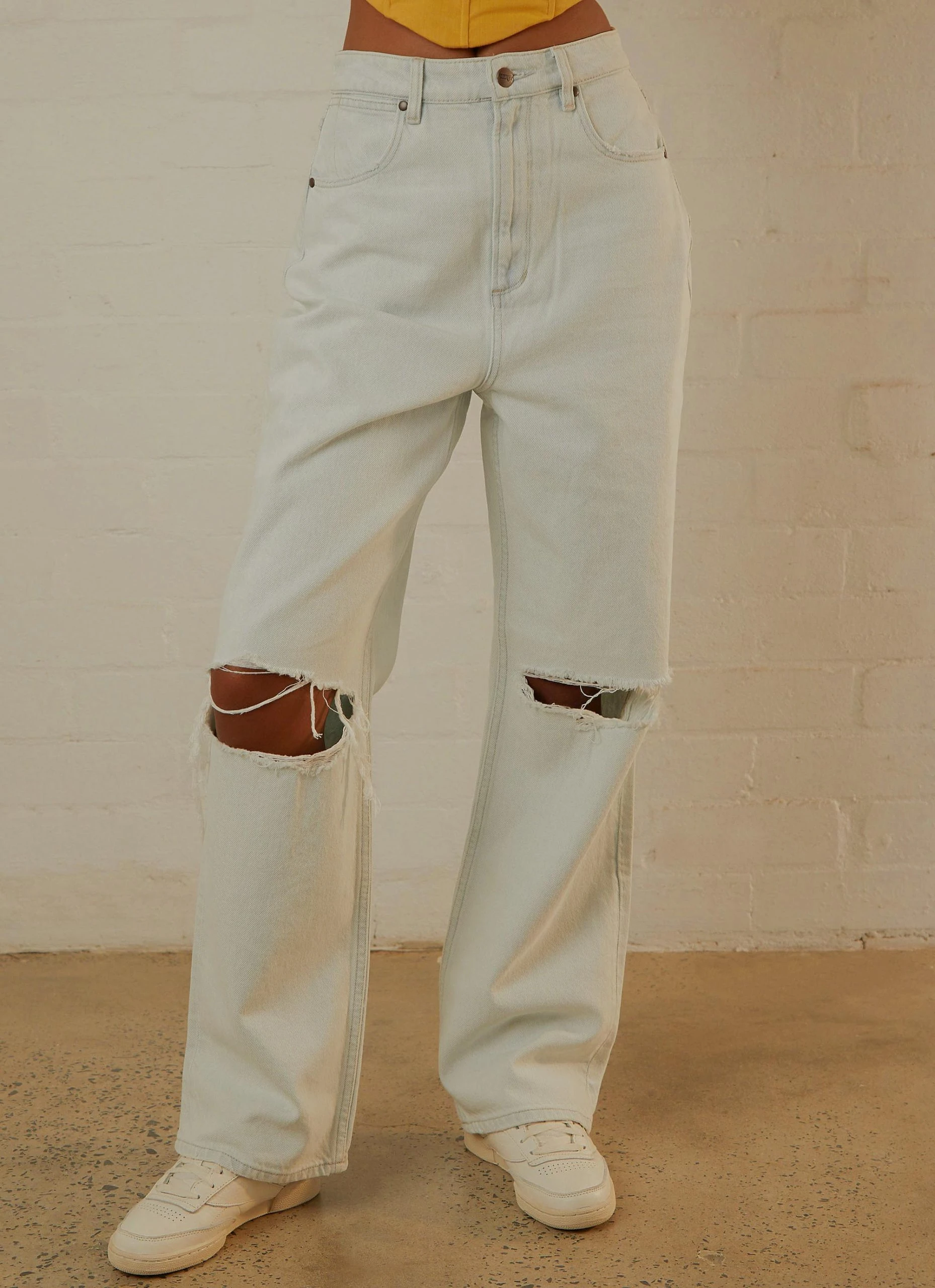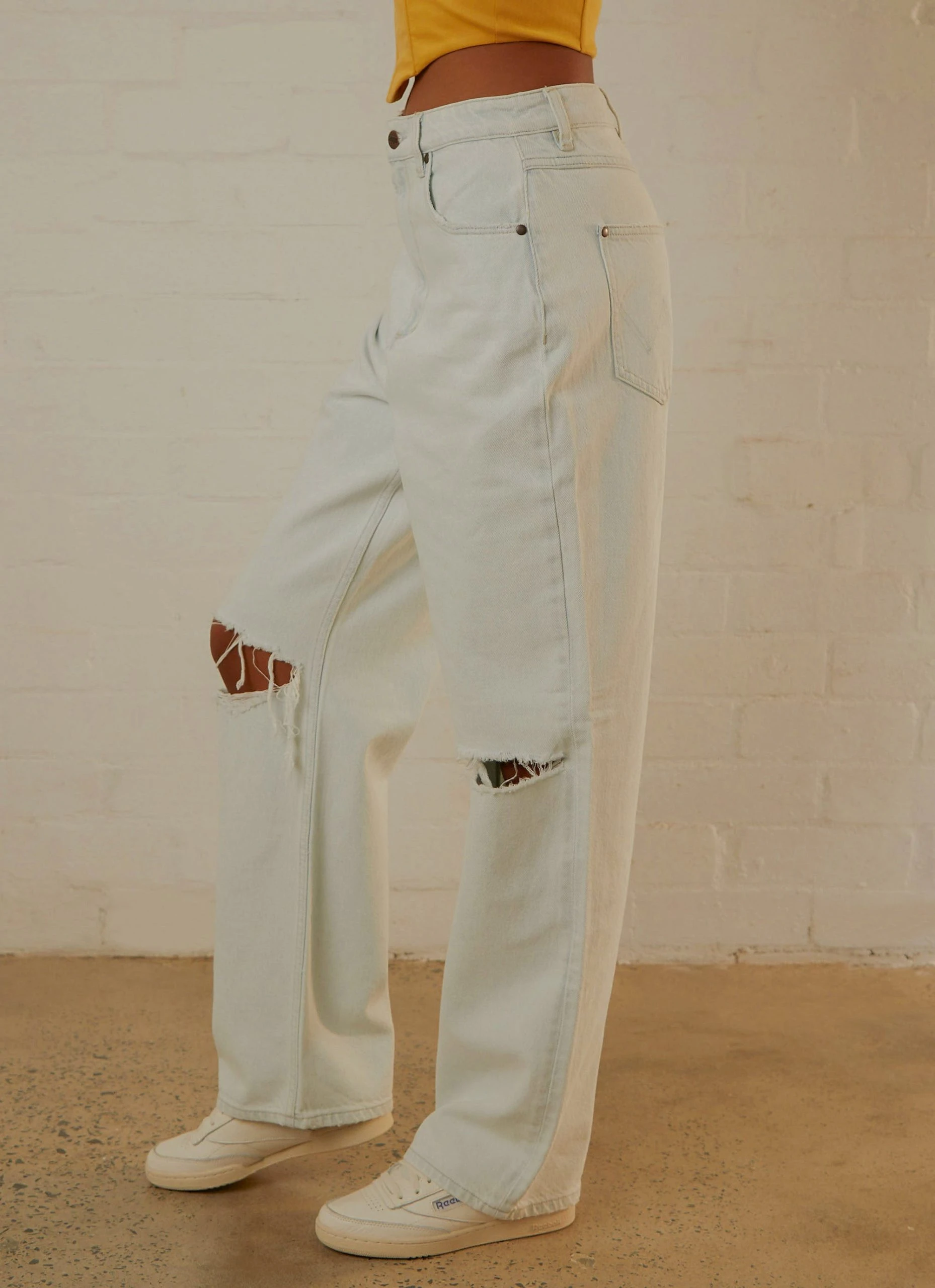 Wrangler’s most relaxed fit yet, the Bella Baggy is our high rise relaxed baggy jean. The wash is a vintage inspired, super bleached, light-blue with a worn-in wash template and added grinding on the pockets and hems for a lived-in look. Our high twill BCI cotton denim adds to the vintage aesthetic to pair back with a tank or shrunken tee for that effortless outfit.