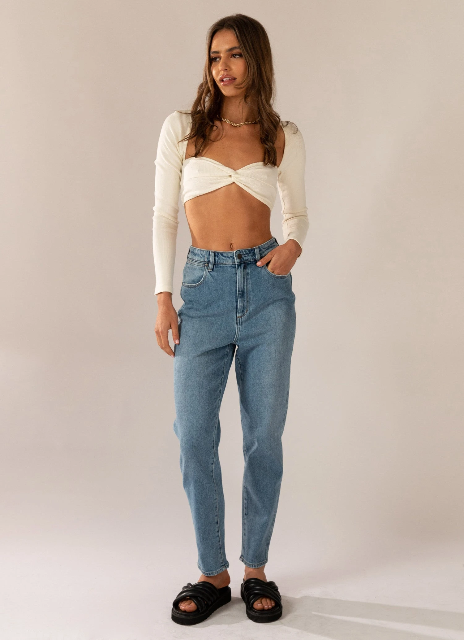 Leilani is 177 cm and wears a denim size 26 (Small, US 4 or AU 8 equivalent)