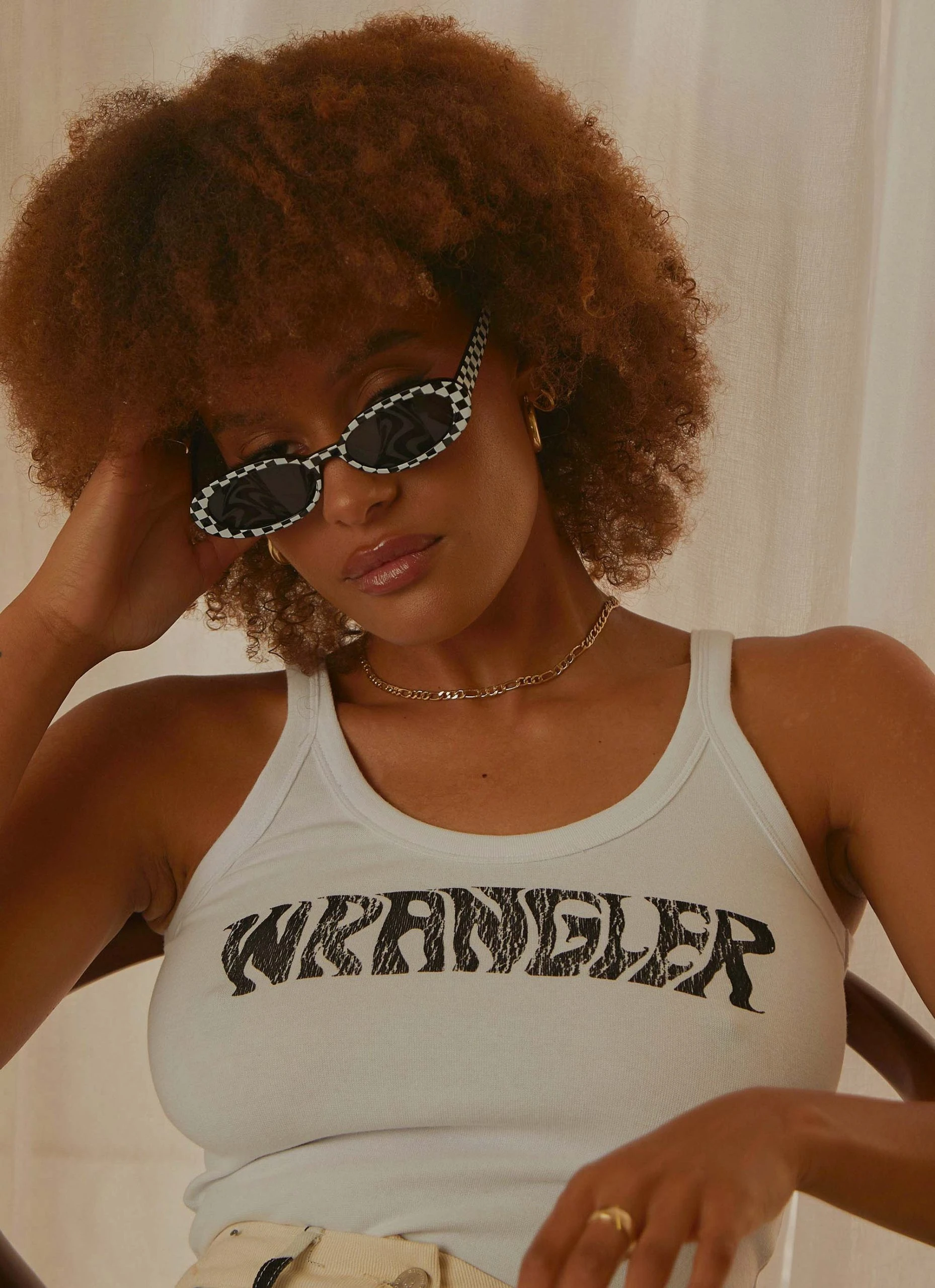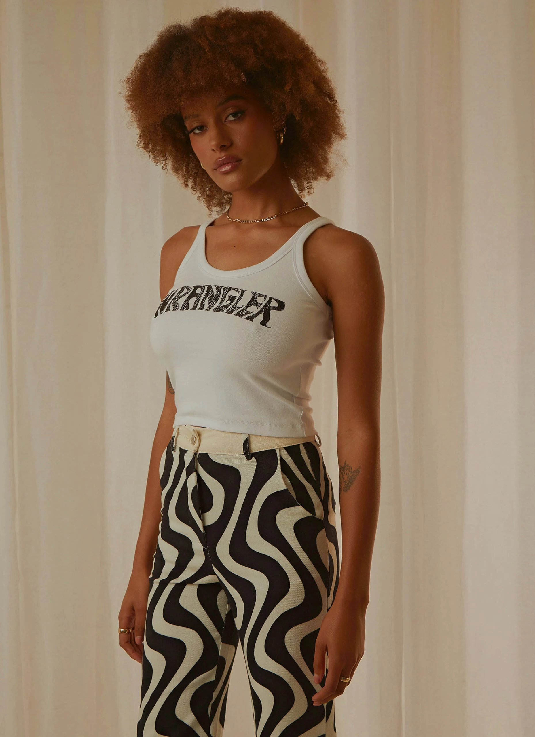 A fitted rib tank with chest logo graphic, made from a super soft cotton blend. Perfect to pair with your fave high waisted denim this summer.
